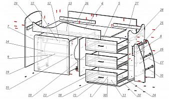 Кровать-чердак с рабочей зоной Мираж К-32 BMS