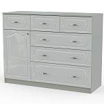 Комод Александр 6 BMS оборудован разноплановыми отделениями, в которых у каждой вещи будет свое место. Три выдвижных ящика для мелочей под столешницей дополнены тремя широкими бельевыми, а за распашной дверцей располагаются полки. Модель с классической рамочной фрезеровкой гармонично смотрится в универсальных белых тонах, создавая в комнате уют. Купить комод Александр 6 BMS вы сможете в нашем интернет-магазине, подобрав необходимые размеры, цвет и фурнитуру.