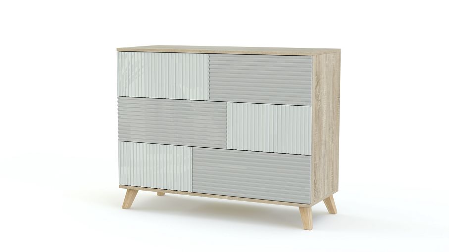 Комод Дания 35 BMS станет оригинальным решением для современных интерьеров в скандинавском или лофт стиле. Эффектная модель, выполненная в светлых тонах и фрезерованном глянце, оборудована шестью асимметрично расположенными выдвижными ящиками для домашнего текстиля и бытовых мелочей и широкой столешницей. Высокие опоры обеспечат конструкции визуальную легкость и упростят уборку в помещении. Купить комод Дания 35 BMS вы сможете по доступной цене на сайте нашего интернет-магазина.