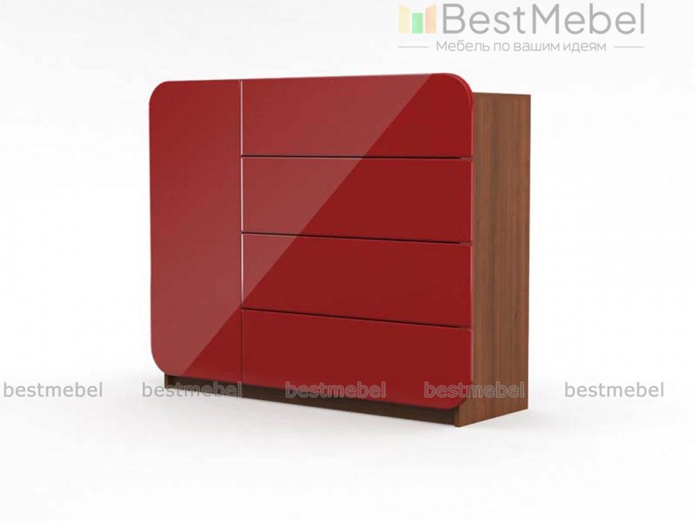 Нестандартный дизайн и насыщенная расцветка – это модель для смелых идей в интерьере и современных решений. Четыре выдвижных отделения и одно распашное имеют матовые фасады без ручек, скругленные по краям. Компактный и вместительный, комод МБ 32.1 BMS позволит разместить все необходимые в гостиной, спальне или прихожей мелочи. Столешница подойдет для ТВ или выгодно представит предметы декора. Приобрести модель по доступной цене приглашаем в наш интернет-магазин.
