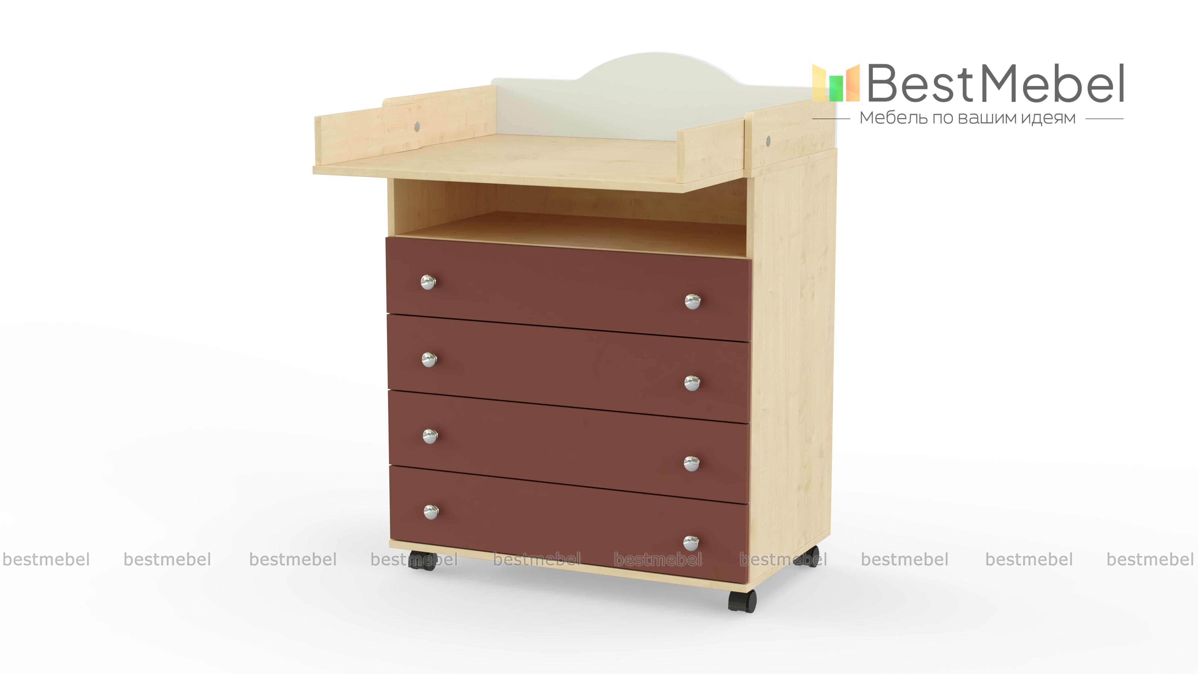 Комод пеленальный Умка Нео 3 BMS вы сможете без труда перемещать по комнате благодаря колесикам. Для удобного хранения вещей ребенка и уходовых средств модель оборудована четырьмя выдвижными ящиками с парными ручками-кнопками и нишей. Бортики и фигурно вырезанная задняя панель не имеют острых углов, а откидной пеленальный столик превращается в полку, когда не используется. Купить комод пеленальный Умка Нео 3 BMS приглашаем в наш интернет-магазин с выбором фурнитуры и цвета по каталогу.