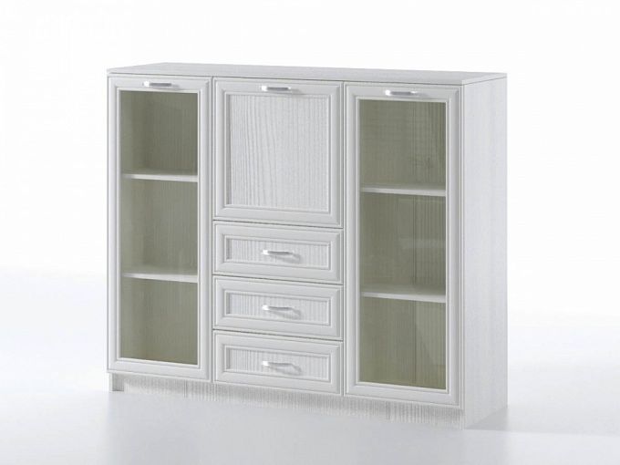 Комод с витриной София Стекло BMS отличается крупными габаритами, элегантным классическим дизайном и займет центральное место в меблировке гостиной или спальни. Модель с рамочными фасадами располагается на высоком цоколе, выполнена в белом цвете и декорирована рамкой. Для размещения интерьерных украшений, книг, посуды, напитков и множества мелочей предусмотрены выдвижные ящики, откидное отделение и распашные витрины с полками. Купить комод с витриной София Стекло BMS приглашаем в наш интернет-магазин.