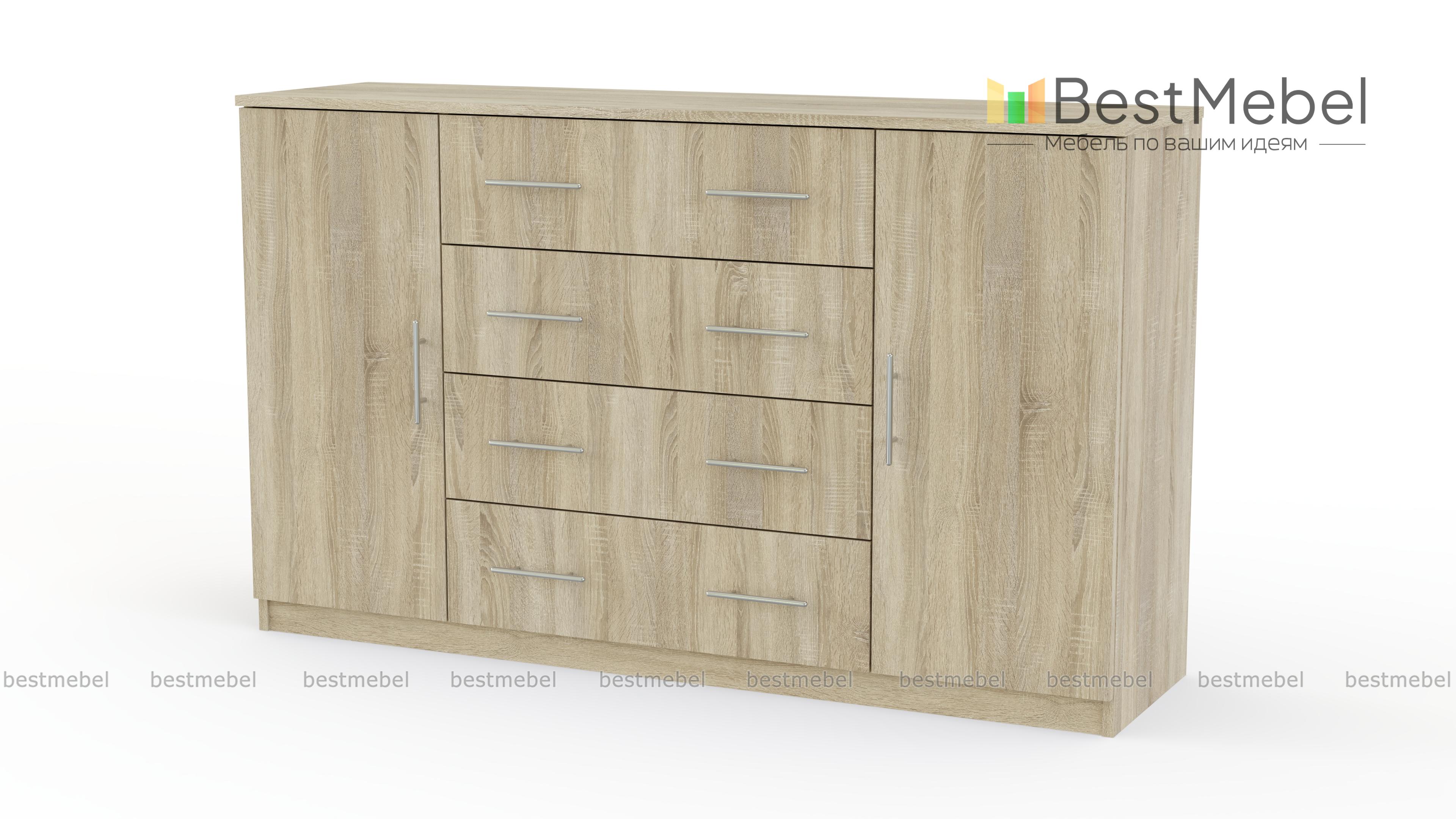 Довольно большая, вместительная модель выполнена в современном классическом стиле, выглядит прочной и солидной. Комод Светлана СВ-16 BMS имеет четыре больших выдвижных ящика посредине и две тумбы с полками по бокам. Он отлично подойдет для спальни или гостиной, даст возможность комфортно расположить множество домашних вещей. Небольшая цена позволит купить комод Светлана СВ-16 BMS для дачи. У нас Вы можете заказать эту модель наиболее подходящего для Вас цвета, при заказе указав нужные размеры.