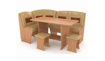 Традиционное оформление кухонного уголка Консул 3 BMS понравится поклонникам классического дизайна и по-домашнему уютных вещей. Практичный и функциональный, он включает в себя угловой диван с мягкой обивкой в практичном кожзаме с декоративными контрастными вставками, просторный стол с дополнительной открытой полкой и два табурета. Спинки изящно выгнуты, края мебели безопасно закруглены. Для многочисленных хозяйственных мелочей предусмотрен внутренний ящик под скамьей.