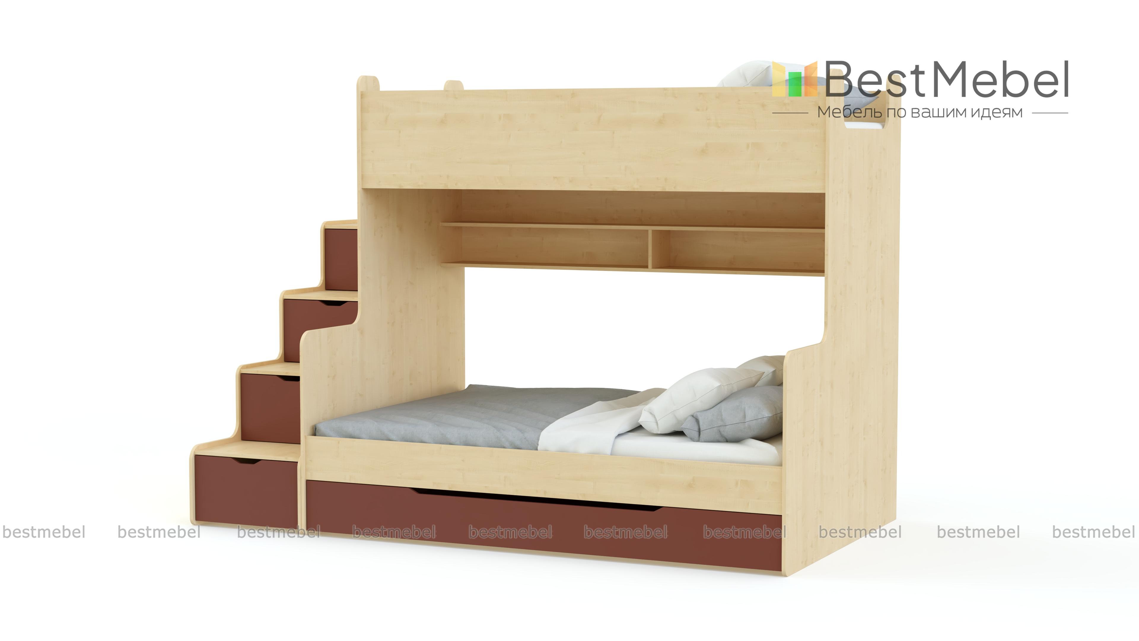 Детская двухъярусная кровать Д-3 BMS подойдет детям и подросткам благодаря простому и функциональному дизайну в современном стиле. Изготовленная из экологичной ламинированной плиты, композиция включает в себя кровать с бельевым ящиком и полкой для книг и приставную лестницу-стеллаж, оснащенную четырьмя ящиками для игрушек или одежды. Все углы кровати безопасно скруглены, а ящики оборудованы удобными для детей вырезными ручками. Купить детскую двухъярусную кровать Д-3 BMS приглашаем в наш интернет-магазин с выбором цвета и размеров.