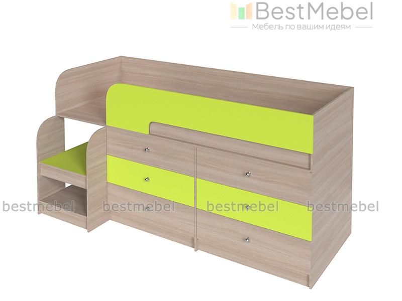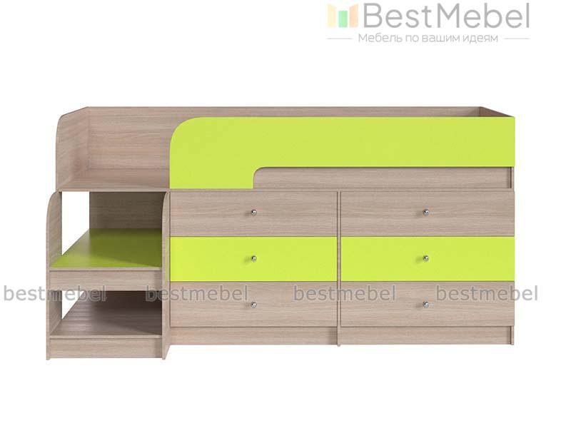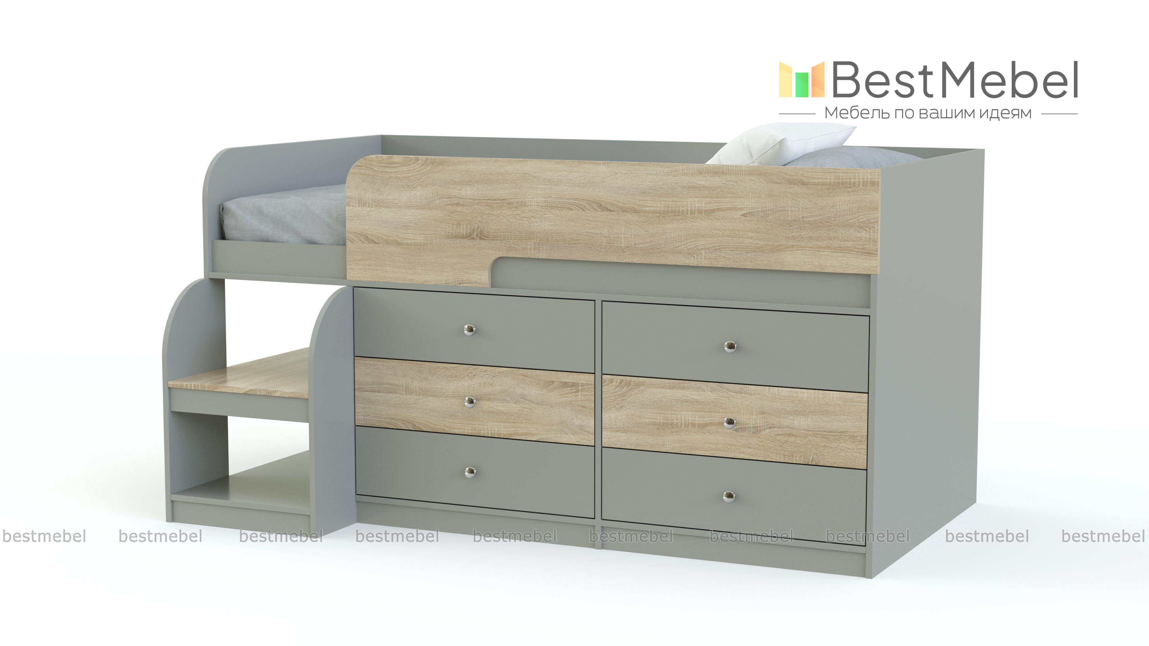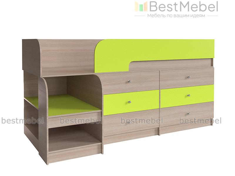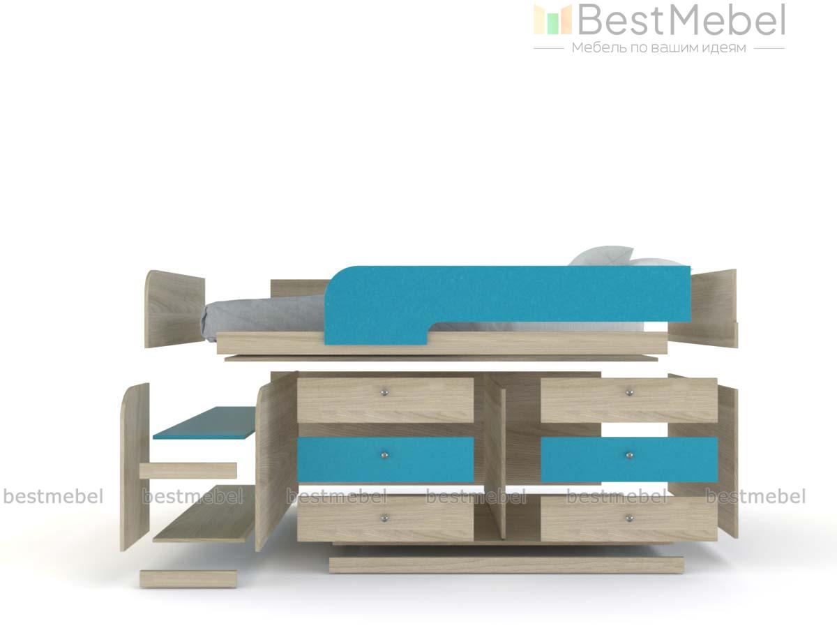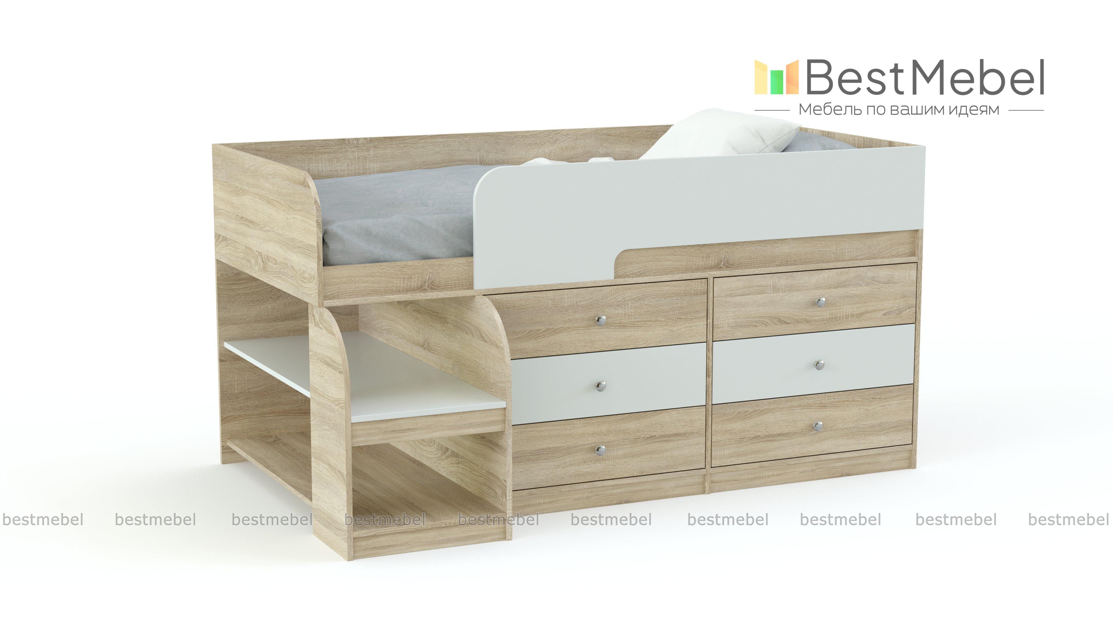 Кровать-чердак Маркиз 35 BMS – это практичный синтез спального места и системы хранения. Благодаря удачному проекту вы сэкономите пространство в комнате малыша. Чтобы забраться наверх, нужно воспользоваться прочной лестницей. Две широкие и глубокие ступени одновременно являются вариантом для расположения книг, вещей. Постель наверху – поэтому оборудована бортами. Под основанием размещены два блока: по три выдвижных ящика в каждом. Одежда и текстиль будут аккуратно разложены по полочкам. При заказе вы можете выбрать необходимый цвет ЛДСП.