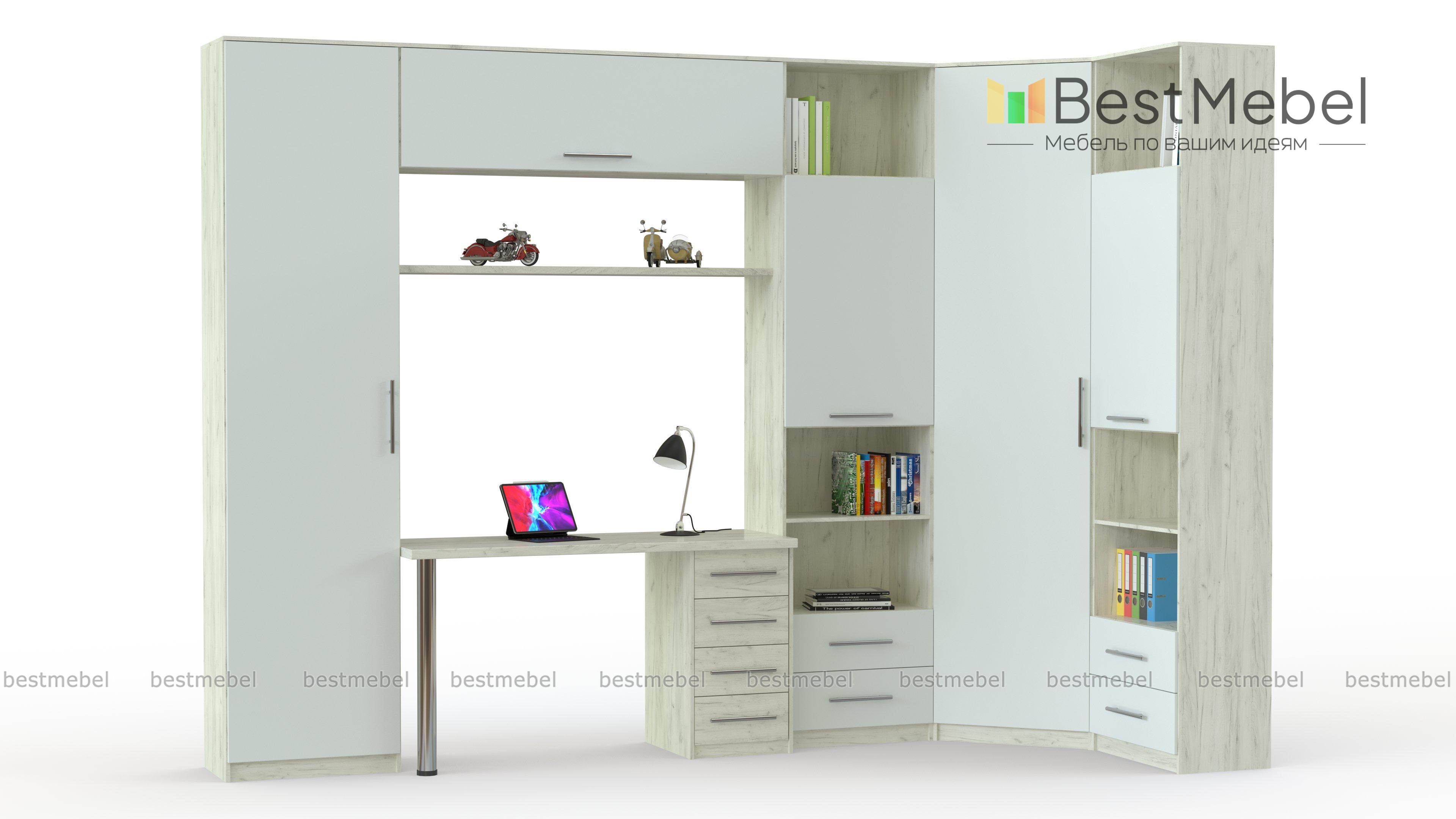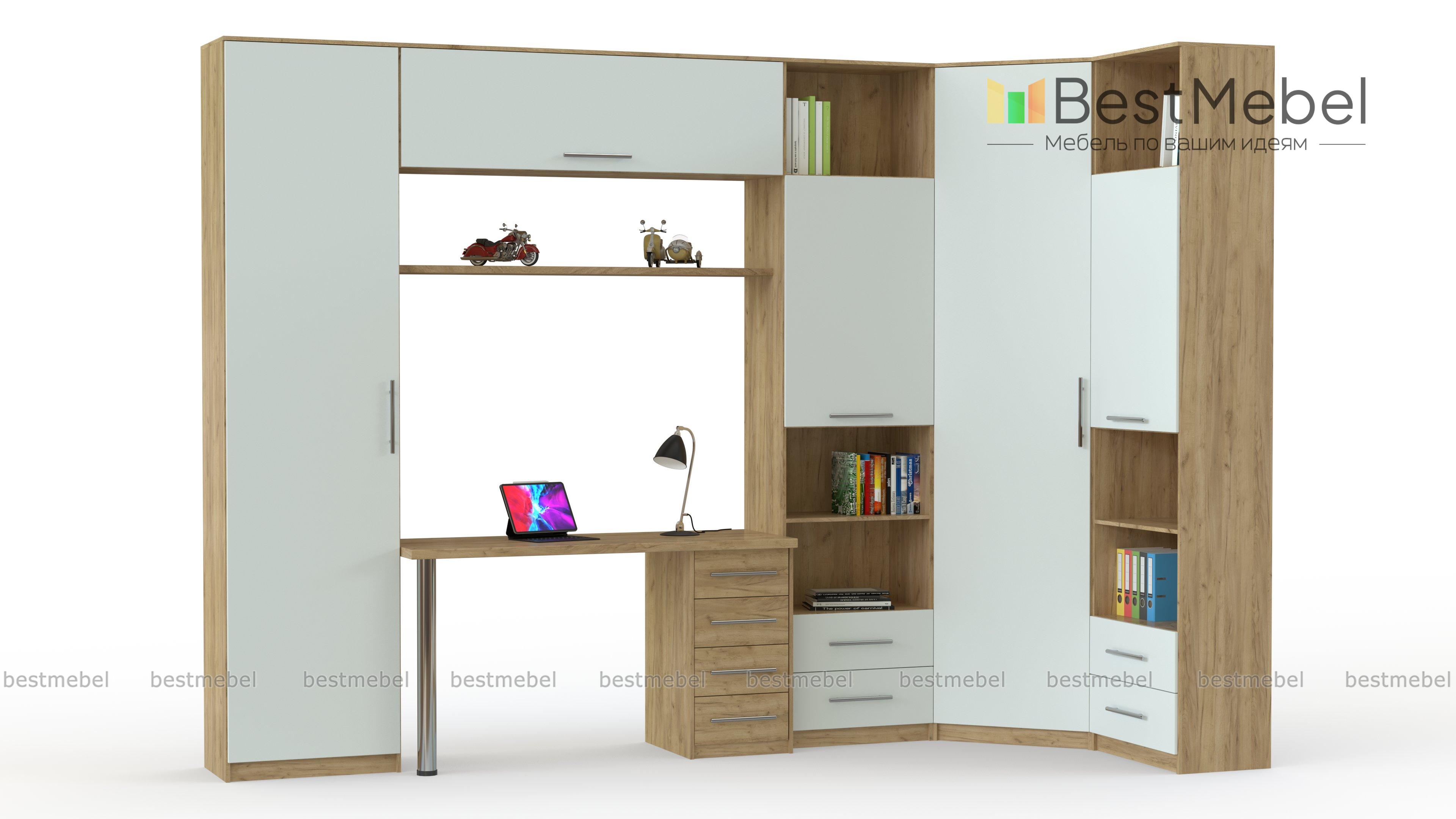 Стенка Патрик-3 BMS – это современная модель в коричнево-бежевой гамме для молодежной комнаты, гостиной, спального интерьера. В единой композиции гармонично совмещены продуманная система хранения и рабочее место, позволяя экономить пространство. В комплекте угловой однодверный шкаф, комбинированные колонки, пенал, письменный стол с тумбой и навесная полка. Гладкие фасады распашных дверей и ящиков просты в уходе и оснащены практичными ручками-рейлингами. Купить стенку Патрик-3 BMS вы сможете в нашем интернет-магазине.