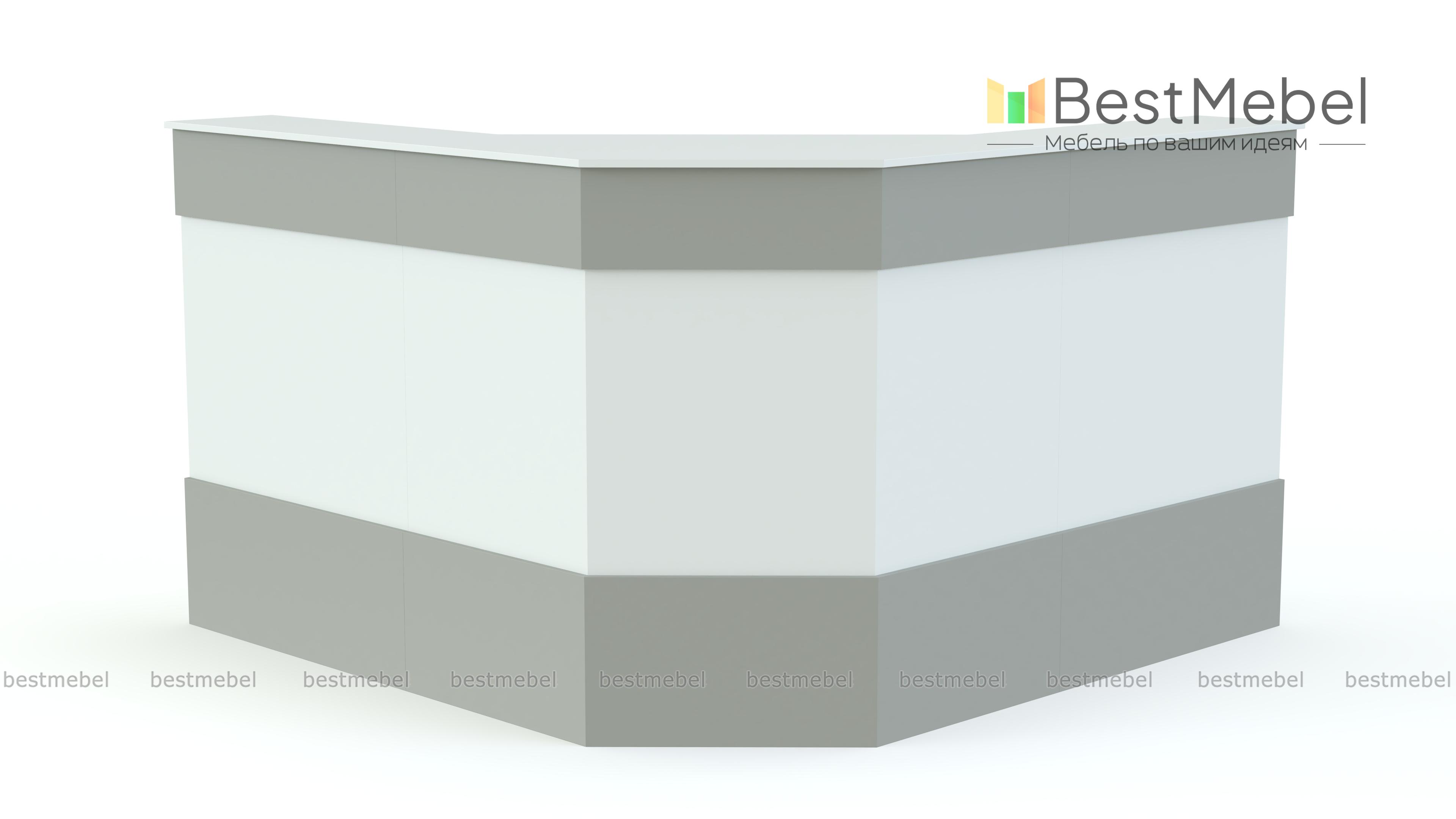 Ресепшен Рейна № 13 BMS – это практичная составная композиция, включающая в себя два прямых элемента и один угловой в форме трапеции. Модель поможет оборудовать комфортную зону ресепшен и отлично впишется в современные интерьеры благодаря исполнению в белом цвете с серыми фасадными планками. Для удобства посетителей и администратора стойка оборудована двумя широкими столешницами - внешней и внутренней. Купить ресепшен Рейна № 13 BMS по выгодной цене приглашаем к нам в интернет-магазин.