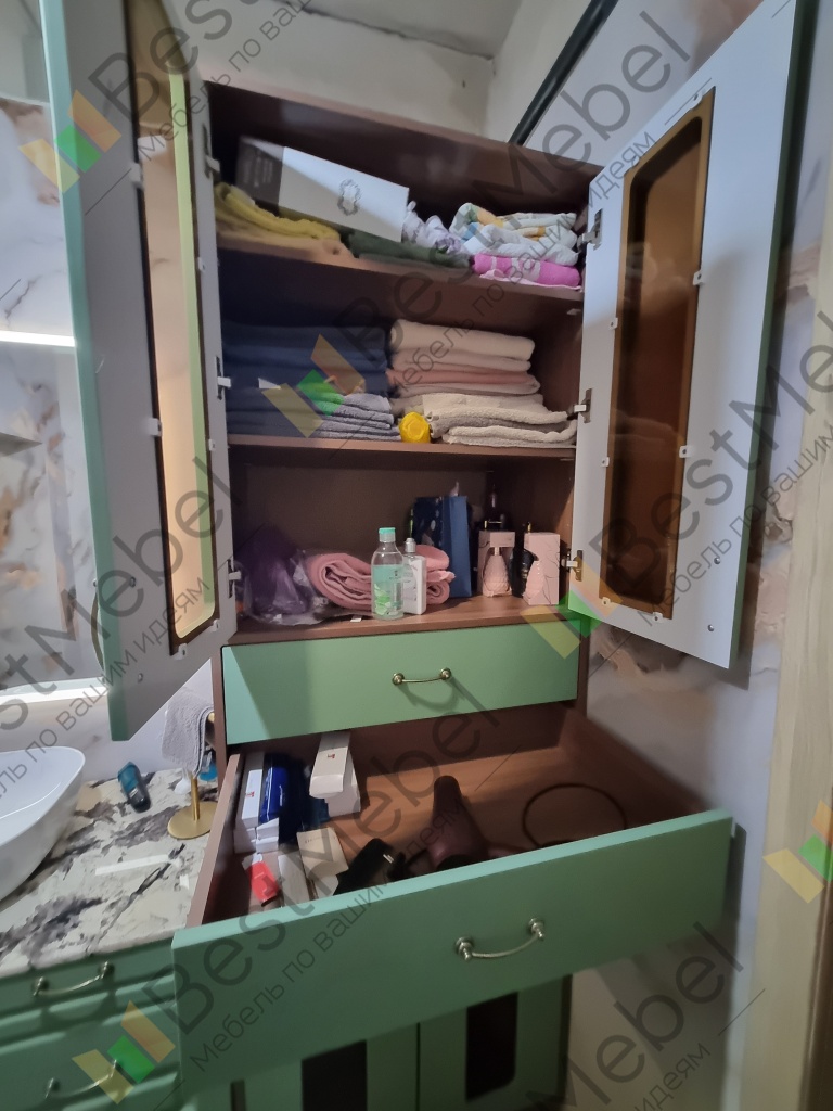 Приобретали пенал по своим размерам. Очень довольна выбором. Изделие очень качественное, красивое и удобное. Заказ 00000275050, изделие ЭСКИЗ Пенал для ванной Ромира 30 BMS (750х2200х520)