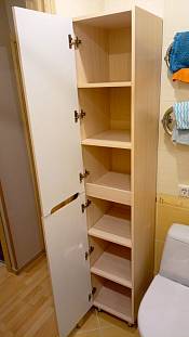 Пенал отлично вписался в интерьер ванной комнаты и составил комплект с тумбой из Леруа Мерлен. Все размеры соблюдены, цвет соответствует заказанному, комплектация полная. Сроки изготовления и доставки соответствуют заявленным.