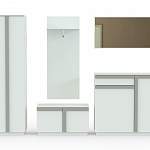 Стильная минималистичная модульная прихожая для современных интерьеров. Необычна сочетанием графитово – серого цвета фасадов со светлыми практичными ручками – планками. Состоит из однодверного шкафа с вешалкой и полками, двухдверного комода, на котором могут разместиться нужные мелочи, удобной тумбы для хранения обуви и открытой вешалки для верхней одежды с крючками под сумки и полкой для головных уборов. Входит в комплект и большое зеркало. Все секции модели Бриндизи BMS вы сможете расположить с учетом особенностей вашей прихожей.