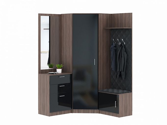 Прихожая Премиум 1.34 BMS поможет оборудовать малогабаритную квартиру или студию. Современный комплект выгодно использует возможности планировки и сэкономит пространство благодаря угловой конструкции. Компактная, но при этом вместительная, модель оборудована однодверным шкафом для одежды, комодом с зеркалом, открытой вешалкой с пуфом-обувницей и антресольной полкой. Глянцевые поверхности фасадов эффектно сочетаются с мягкой обивкой в экокоже с декоративной стяжкой. Купить прихожую Премиум 1.34 BMS приглашаем в наш интернет-магазин по лучшей цене.