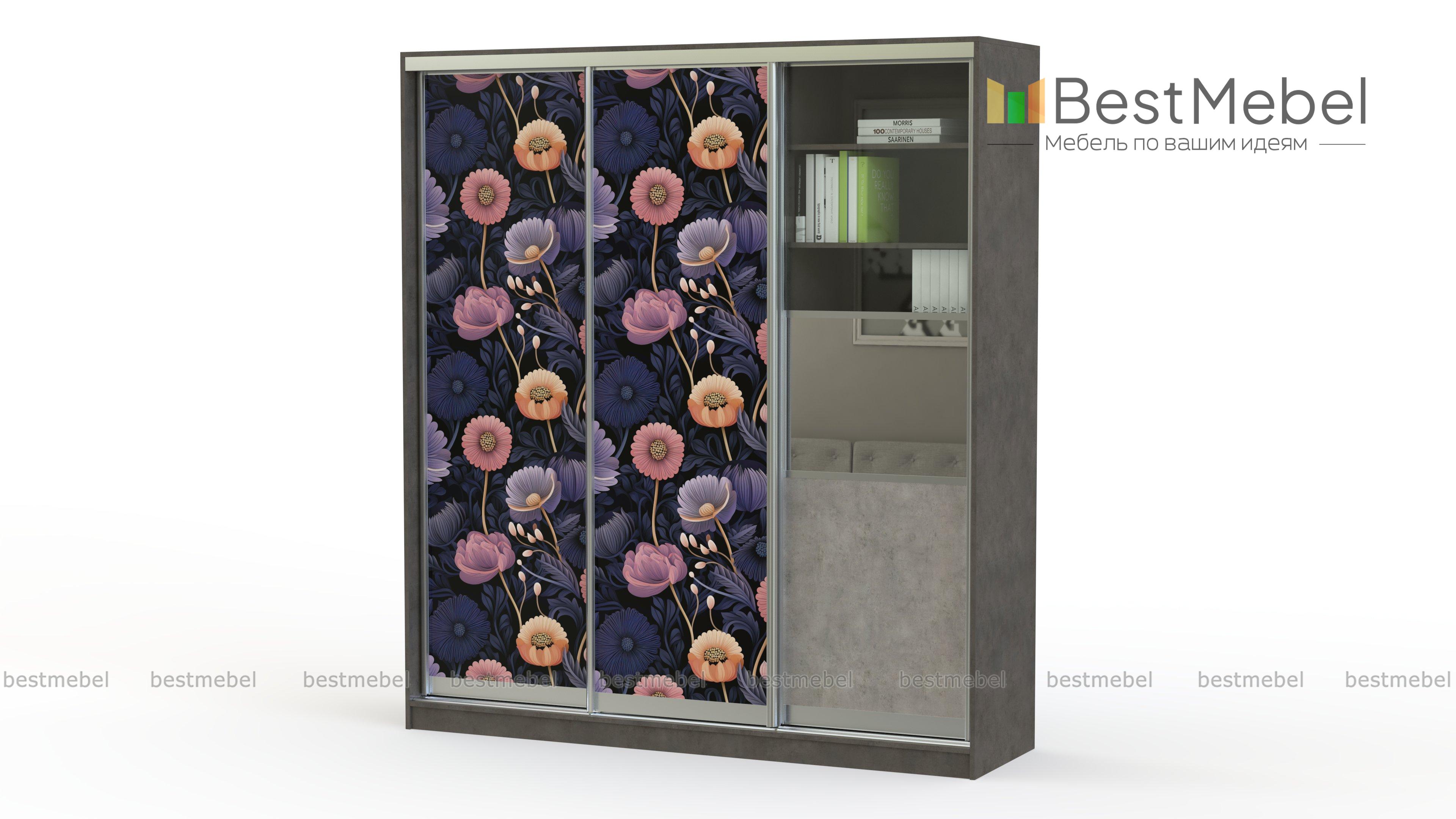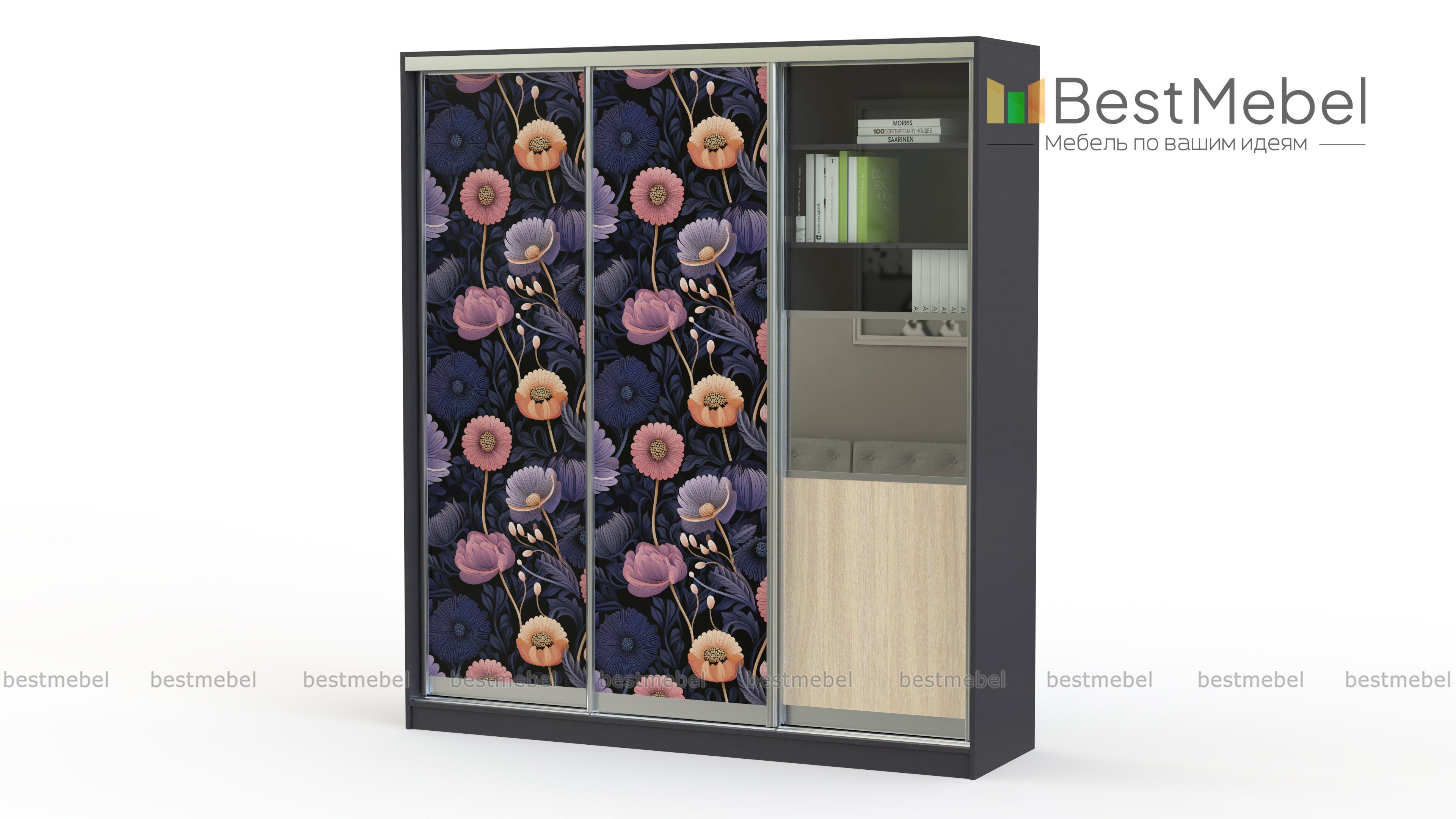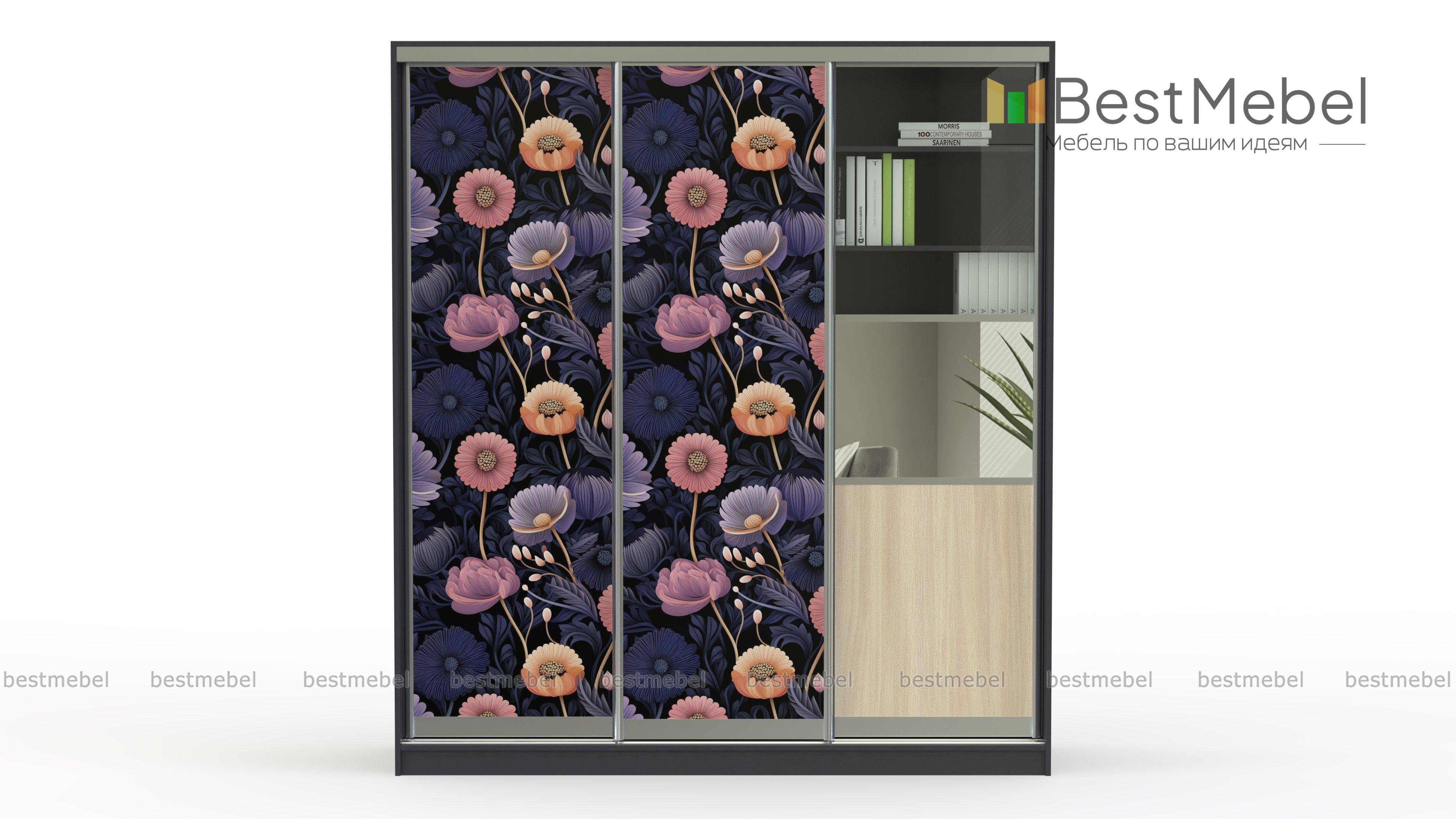 Шкаф-купе Григ 22 BMS отличается практичной комбинированной конструкцией, а фотопечать с изображением цветов внесет в интерьер яркий акцент. Трехдверный шкаф со стеклянной вставкой на фасаде поможет разместить книги, документы, декоративные предметы, а также бытовые вещи и предметы гардероба. Надежная система направляющих станет залогом долгого срока службы. Купить Шкаф-купе Григ 22 BMS приглашаем выгодно в наш интернет-магазин.