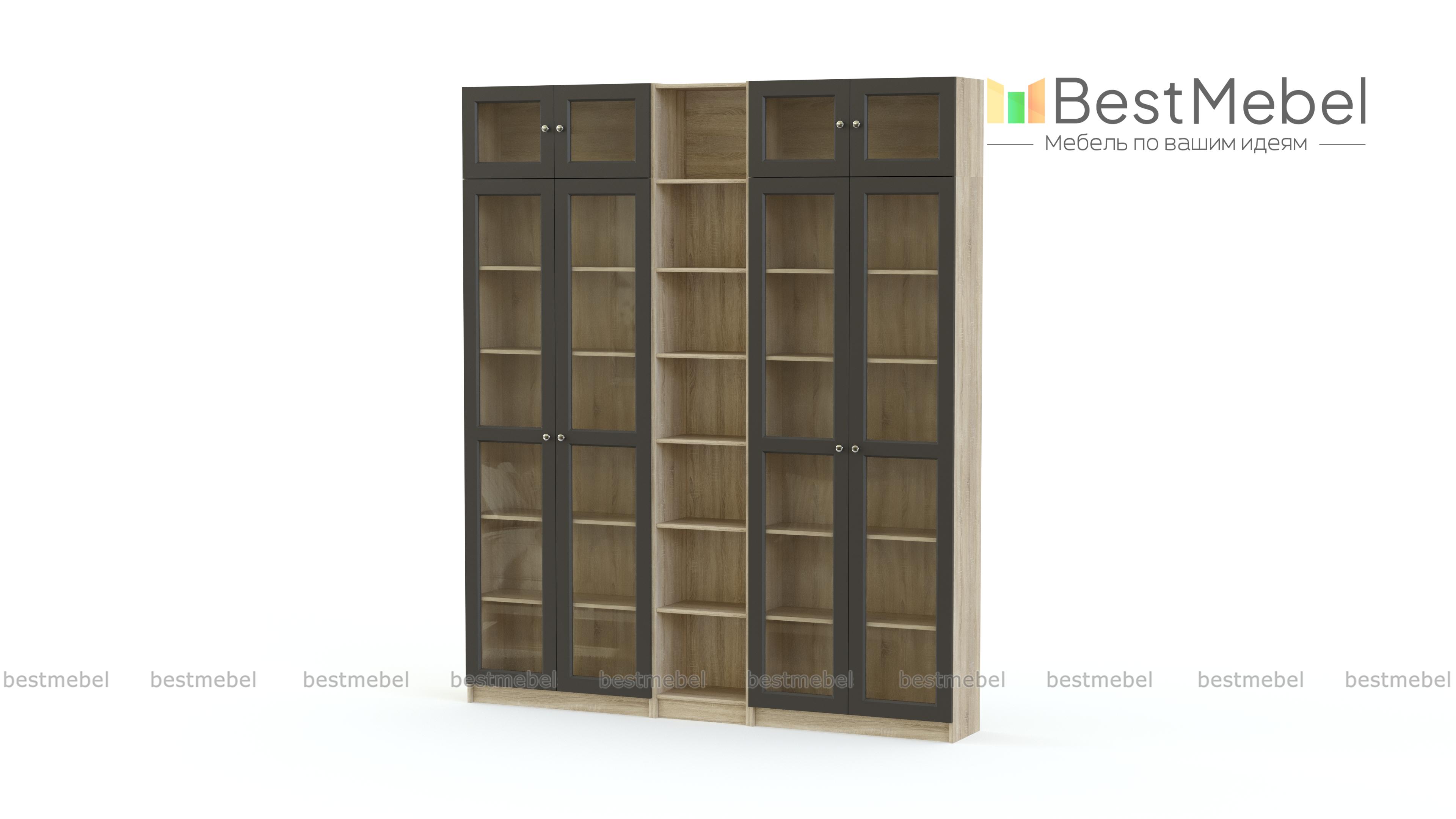 Шкаф Билли Оксберг Billy Oxberg 46 благодаря увеличенной высоте особенно вместителен. Композиция из двух распашных витрин и стеллажа дополнена антресольными секциями. Многофункциональный шкаф заменит громоздкие закрытые конструкции в современных гостиных и эстетично разместит домашнюю библиотеку, посуду, интерьерные вещицы и бытовые мелочи. Купить шкаф Билли Оксберг Billy Oxberg 46 и эффективно использовать пространство вам всегда поможет наш интернет-магазин. Выбирайте мебель в стиле IKEA (ИКЕА) от производителя BestMebelShop!