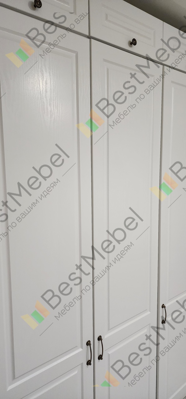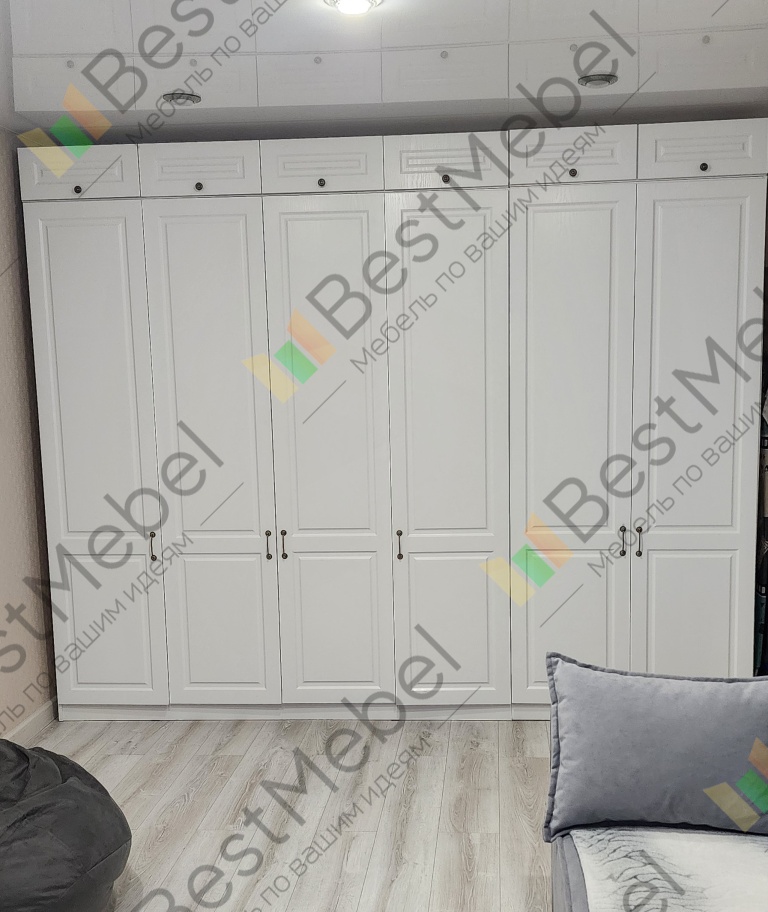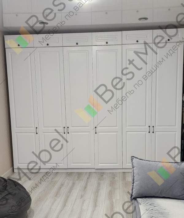 Шкаф распашной Бонн 6 BMS выполнен в базовом светлом оттенке, а индивидуальность подчеркивают стильные детали. Фасад украшен прямоугольной фрезеровкой, на дверцы установлены удобные и стильные круглые ручки. Внутреннее пространство шестидверного гардероба разделено на две секции с вешалками и полками и два бельевых стеллажа. Купить шкаф распашной Бонн 6 BMS, изготовленный по индивидуальным размерам, вы сможете по доступной цене в нашем интернет-магазине.
