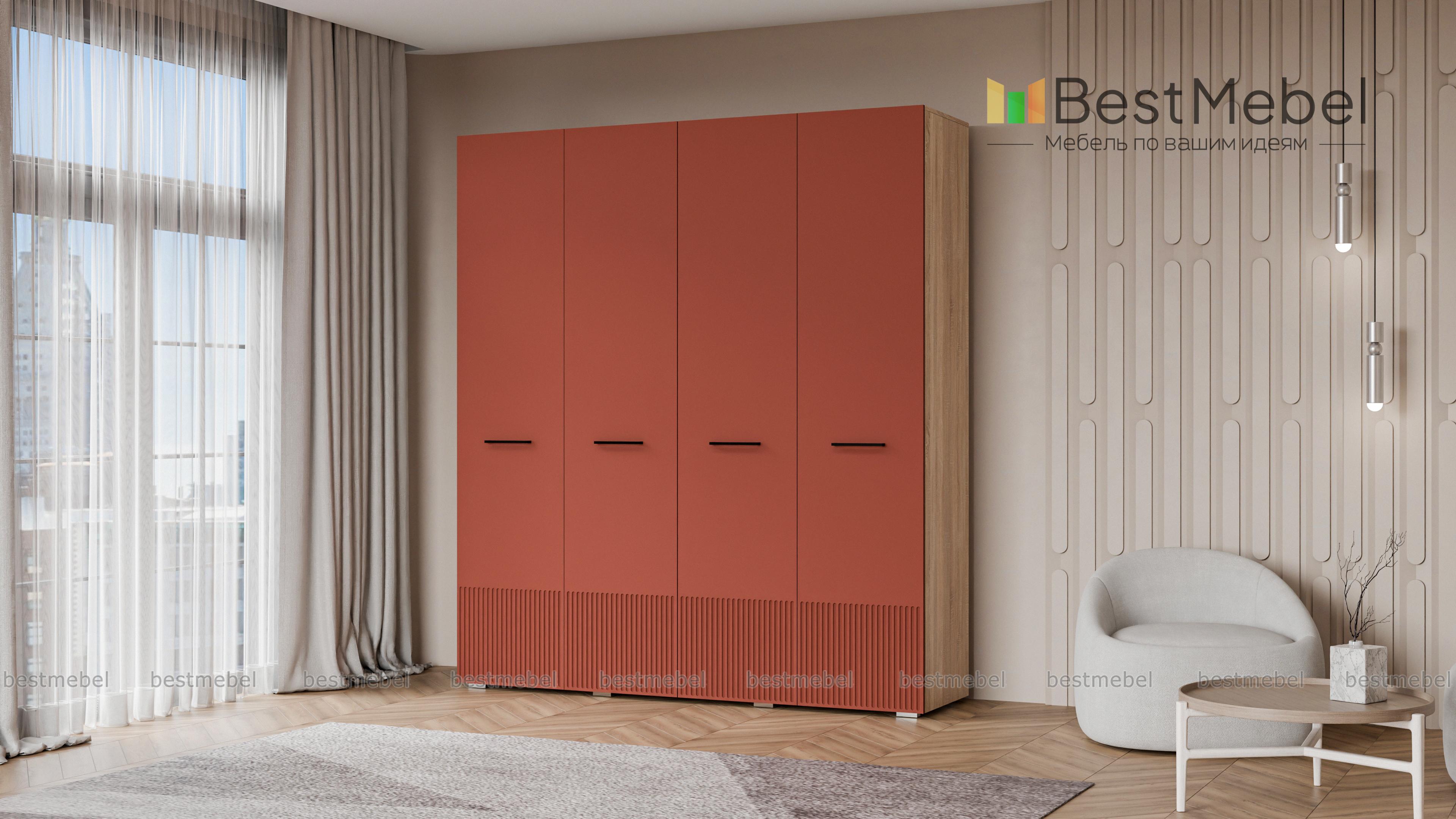 Шкаф распашной Декарт 4 BMS выполнен в традиционном стиле с поперечными контрастными ручками и фрезеровкой, что придает ему современный вид. Сочетание двух штанг разной длины и полок позволяет вам удобно организовать хранение одежды и коробок с обувью. Устойчивый к механическим повреждениям и влаге фасад из МДФ легко содержать в чистоте. Купить шкаф распашной Декарт 4 BMS с выбором размеров, цвета и наполнения вы всегда сможете в нашем интернет-магазине.