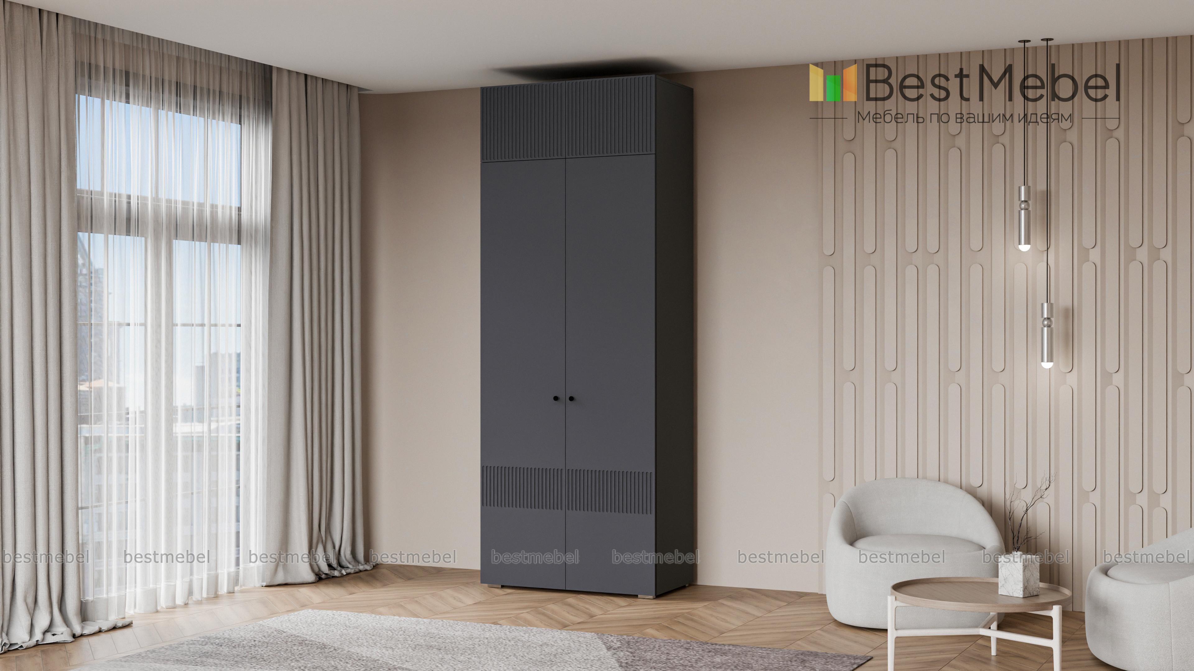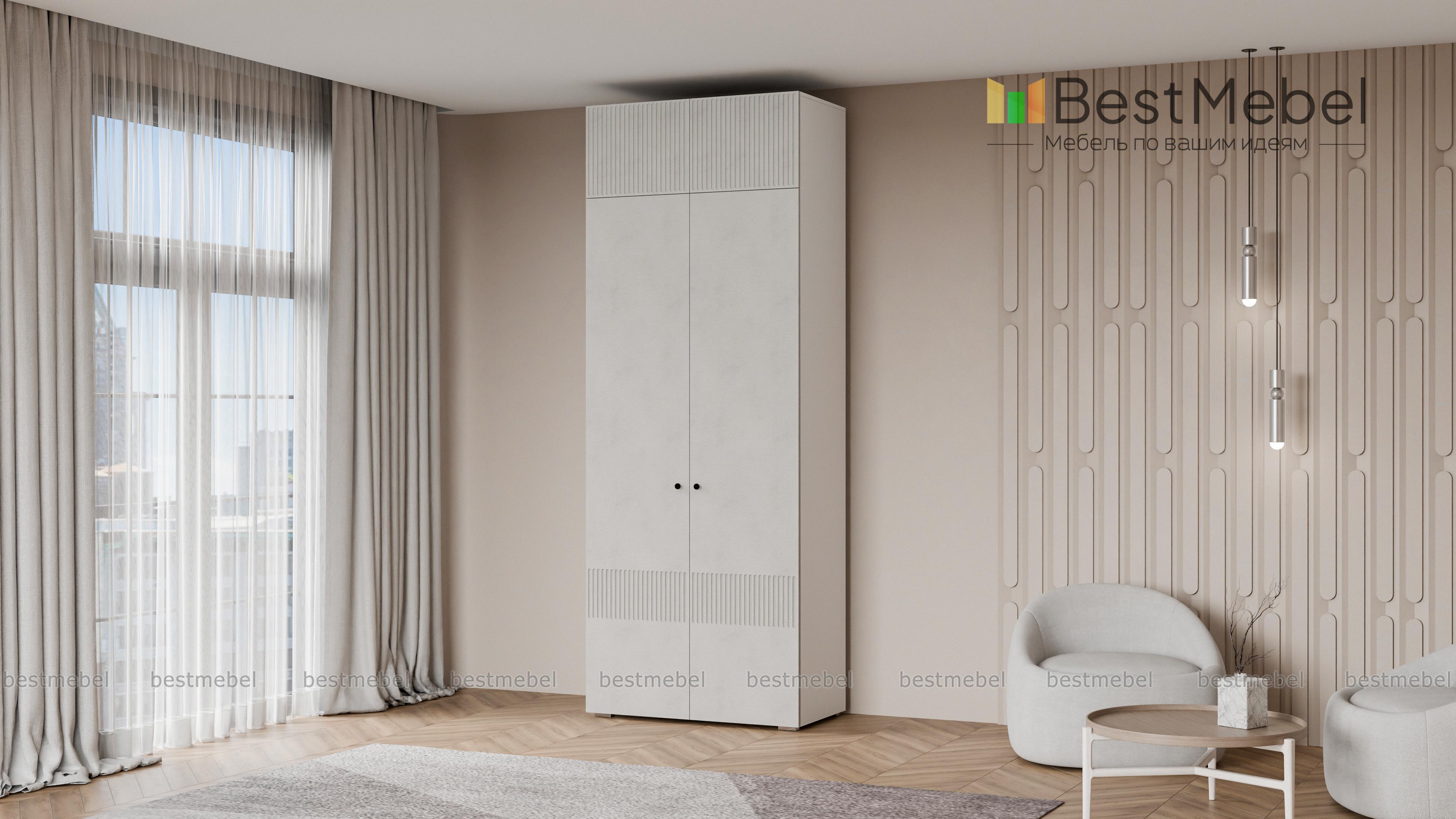 Шкаф распашной Джосс 8 BMS поможет эстетично организовать хранение, даже если пространство ограничено. За двумя дверцами, украшенными вертикальной фрезеровкой, — платяное отделение для одежды на вешалках и полка под коробки с аксессуарами. Дополнительный отсек сверху добавляет небольшому шкафу полезного объема, позволяя разместить сезонные или габаритные вещи. Купить шкаф распашной Джосс 8 BMS, изготовленный по индивидуальным размерам, вы сможете на сайте нашего интернет-магазина.