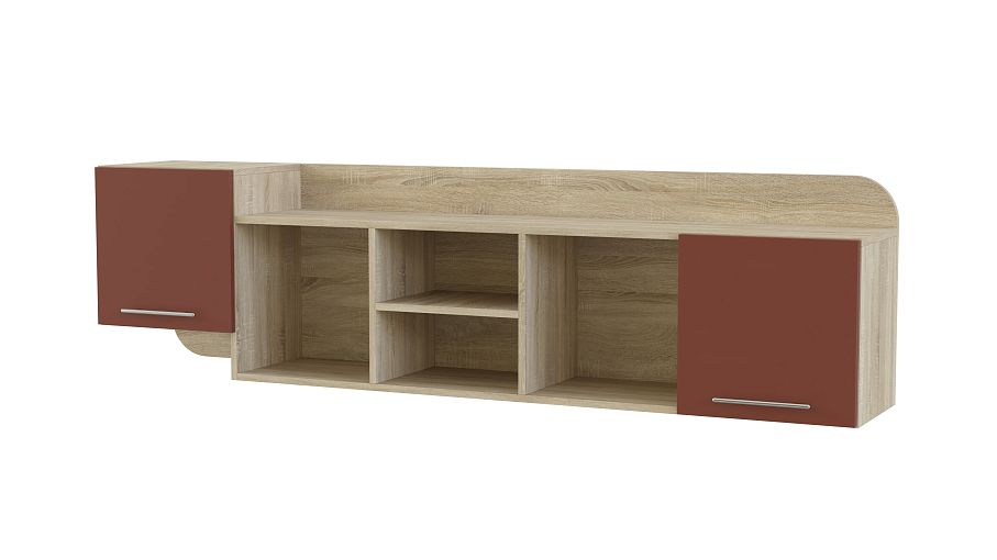 Полка навесная Нота 4 BMS отличается ярким дизайном и дополнит интерьер современной детской. Широкая полка оборудована как открытыми секциями разной высоты, так и глухими отделениями для удобного хранения книг, игрушек, принадлежностей для школы и творчества. В оформлении полки скомбинированы нейтрально-древесный корпус и цветные фасады с ручками-скобами. Купить полку навесную Нота 4 BMS вы сможете в нашем интернет-магазине, подобрав наиболее подходящее цветовое решение.