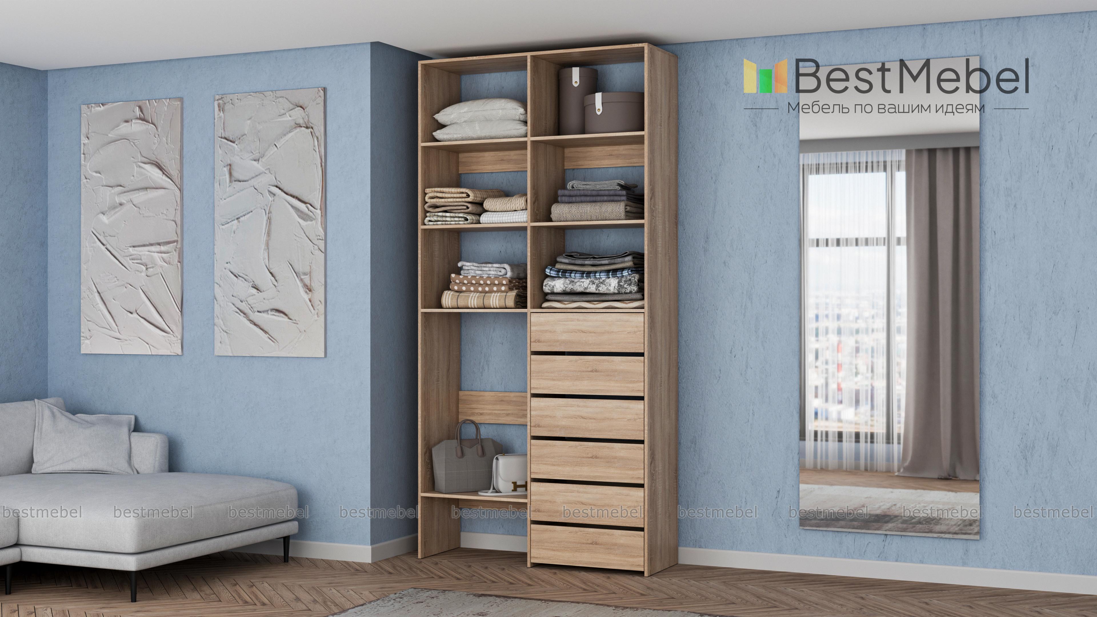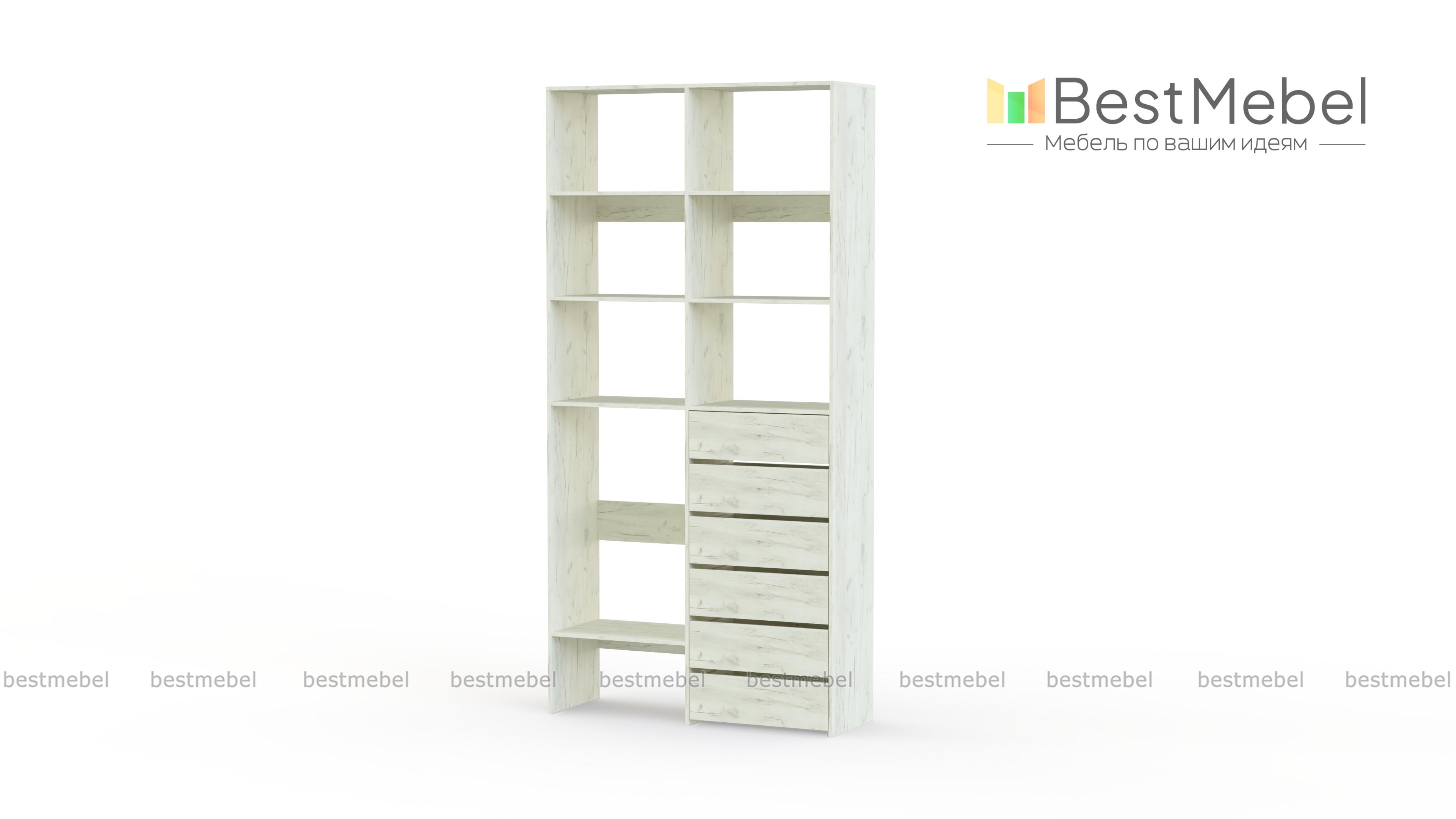Стеллаж для одежды Мирта 39 BMS представляет собой готовое решение для вашей прихожей или гардеробной комнаты. Расположенные на разной высоте полки и целых шесть выдвижных ящиков позволят вам разместить как мелкие, так и габаритные вещи: одежду, обувные коробки и всевозможные аксессуары. Для изготовления стеллажа использован современный экологичный материал — ламинированная ДСП. Купить стеллаж для одежды Мирта 39 BMS в оттенках нашего каталога на выбор вы сможете на сайте интернет-магазина.