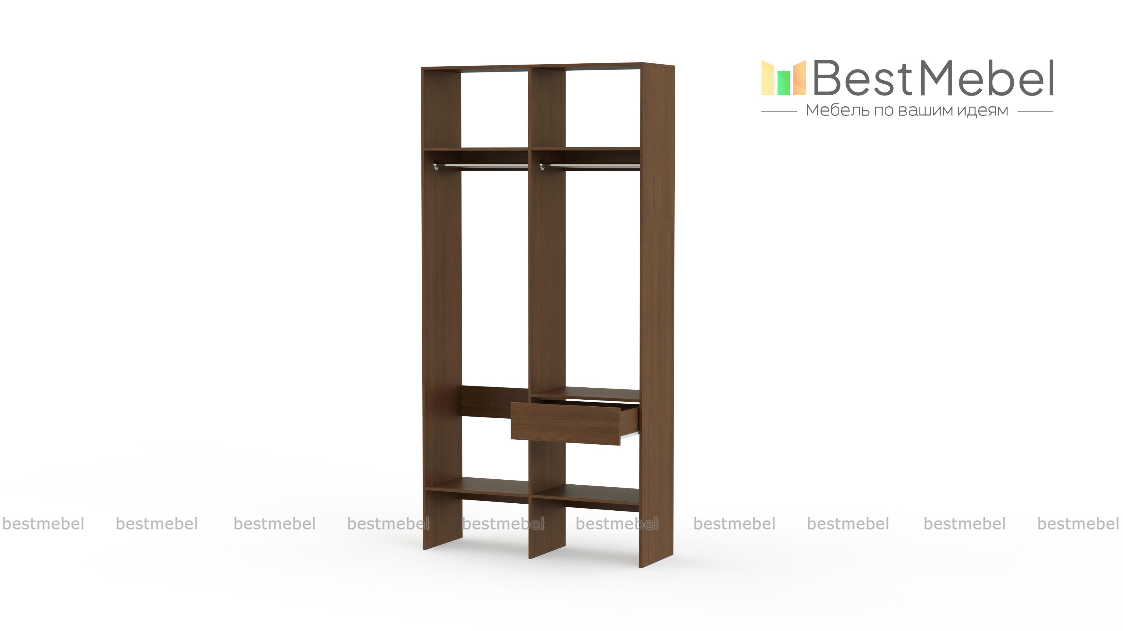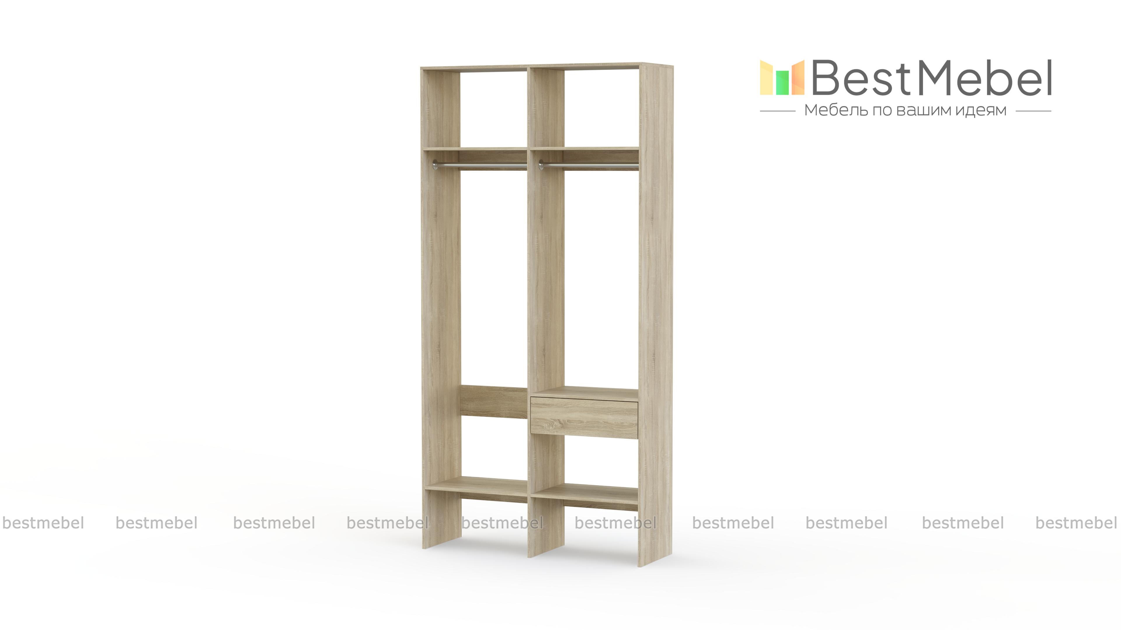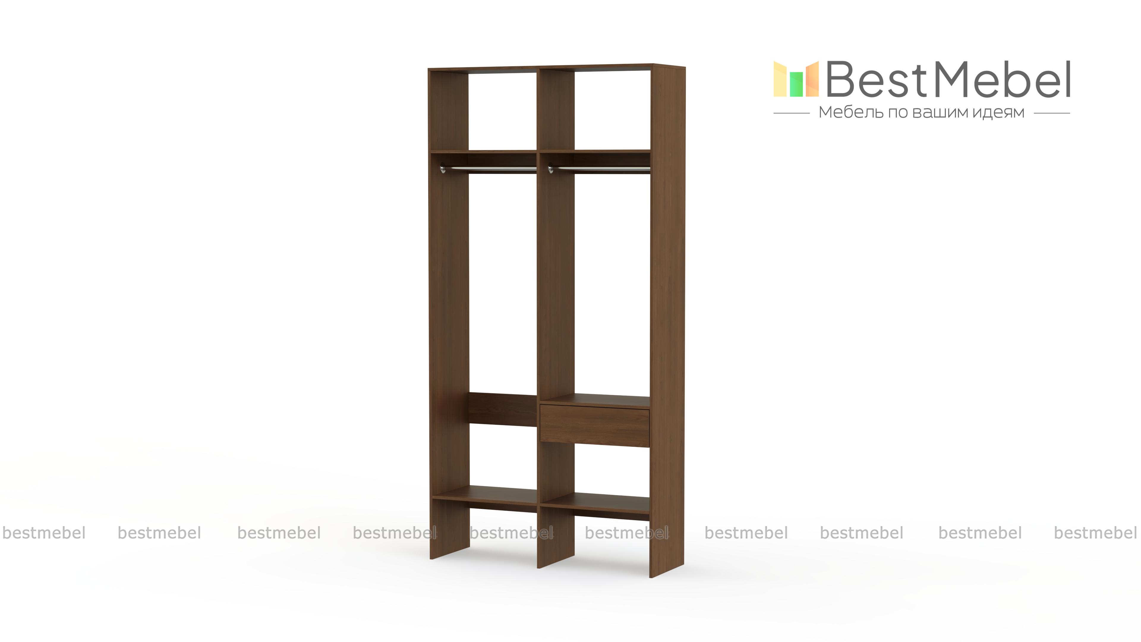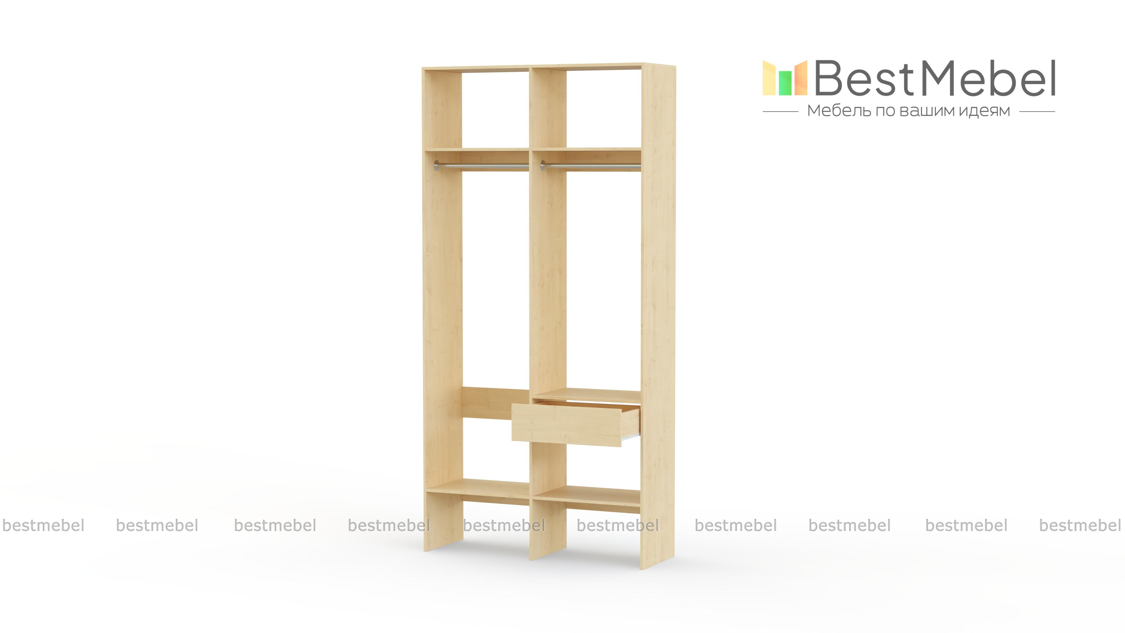 Стеллаж для одежды Мирта 42 BMS для гардеробной или прихожей выполнен в нейтральном светлом оттенке из ламинированной ДСП. Компактная и легкая двухсекционная конструкция объединила два платяных отделения разной высоты, верхние и нижние полки, а также выдвижной ящик, предназначенный для мелочей. В открытом стеллаже будут всегда на виду ваша повседневная одежда и обувь. Купить стеллаж для одежды Мирта 42 BMS вы сможете в нашем интернет-магазине, самостоятельно подобрав размеры и цвет.