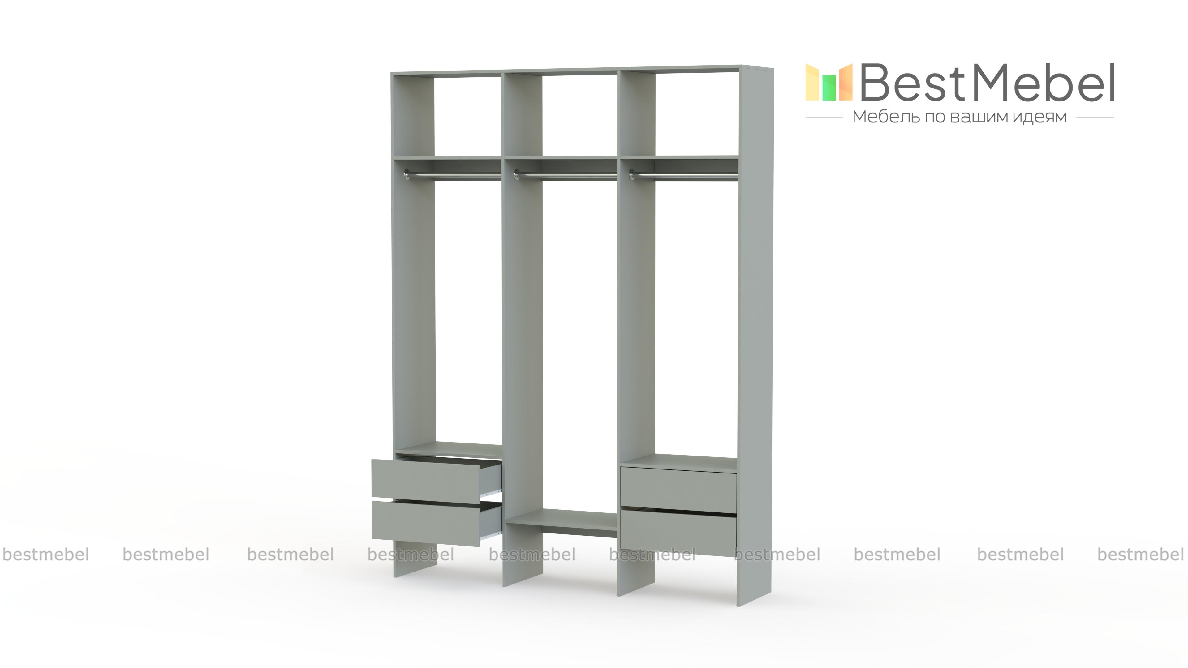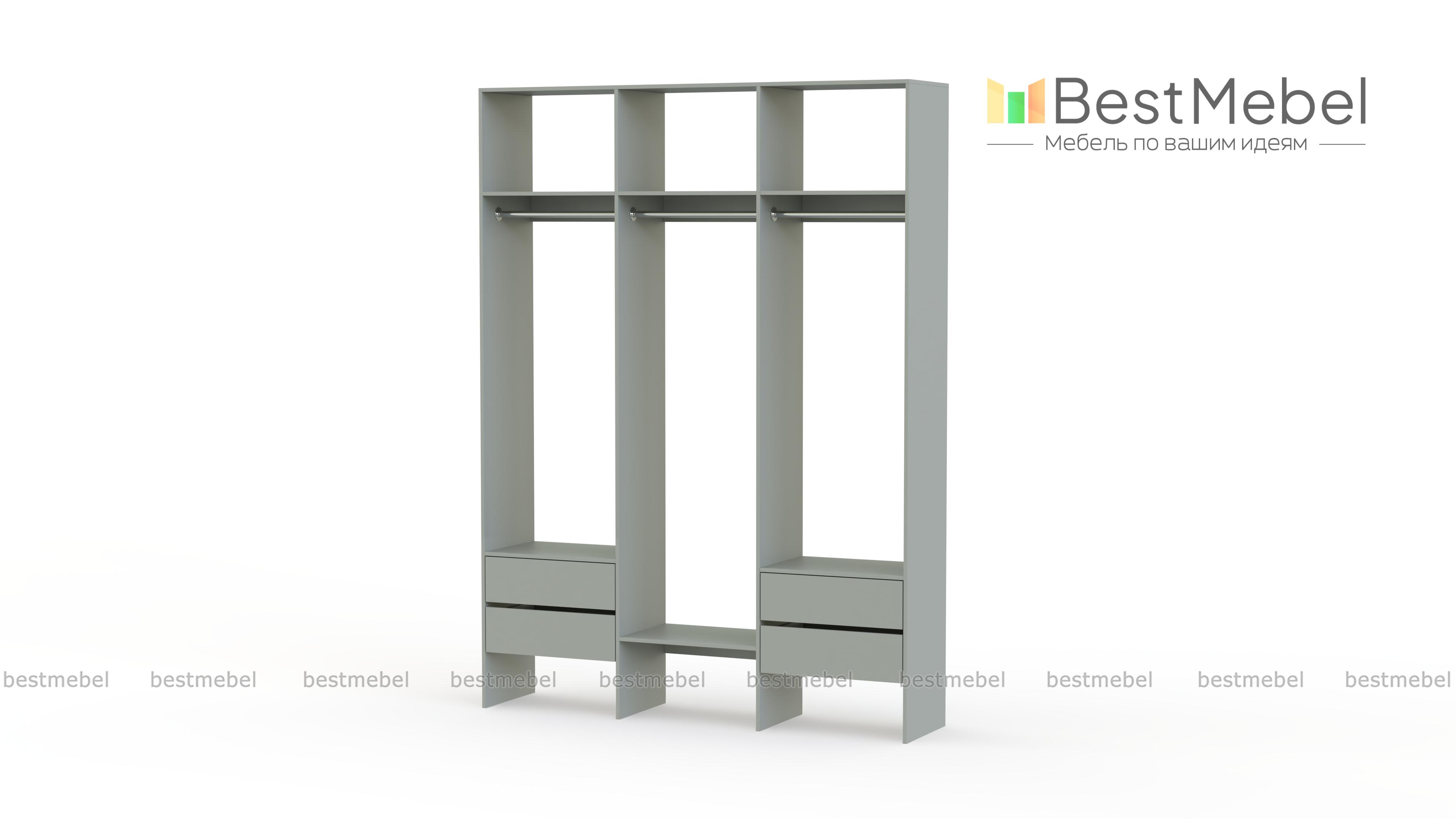Стеллаж для одежды Мирта 58 BMS — это удобная база для вашей прихожей или гардеробной комнаты. Три перекладины позволяют разместить вешалки с короткой и длинной одеждой, для коробок и сложенных вещей предусмотрены полки, а для мелочей — две пары выдвижных ящиков. Лаконичное оформление и возможность выбора оттенка делают трехсекционный стеллаж практически универсальным. Купить стеллаж для одежды Мирта 58 BMS, изготовленный по вашим размерам, приглашаем в наш интернет-магазин.