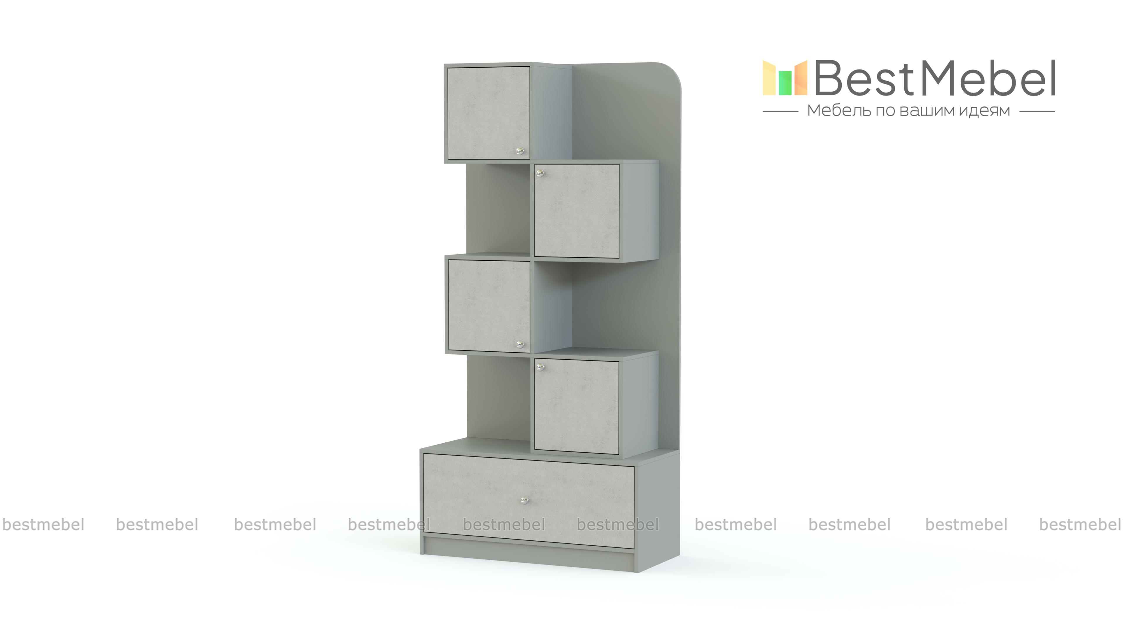 Стеллаж Леон 1 BMS дополнит интерьер современной детской удобной системой хранения для книг, игрушек, принадлежностей для творчества и многого другого. Модель оборудована широким выдвижным ящиком в основании и расположенными в шахматном порядке открытыми и глухими распашными секциями. Корпус в древесных тонах скомбинирован с яркими цветными фасадами на выбор. Купить стеллаж Леон 1 BMS и легко поддерживать в детской порядок вам всегда поможет наш интернет-магазин.