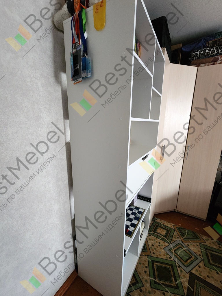 Именно этот дизайн стеллажа подошёл по моим надобностям. И что я получил в итоге?Перво-наперво, сборка была не такая простая и понятная. Инструкция в комплекте непонятная от слова совсем, благо был QR-код на 3D модель. Т.е. после сборок мебели от Ikea очень сильно отличается инструкция.Зазоры. В некоторых местах заметны небольшие просветы, даже после того как многие получилось подтянуть.И последнее плохое, то-ли при доставке, или изначально: на стойке есть след дефекта как-будто провели чем-то острым, но след неглубокий (которую расположил плохой стороной к шкафу). Это мелочи, но не приятно.К хорошему :)Удобства конструктора на сайте. Ты можешь буквально всё изменить, а потом ещё и запросить объёмный вариант, чтобы представлять что получится в итоге. Добавить другие направляющие, подсветку и т.п.Поддержка на уровне, на всех этапах помогала решить все нюансы.В общем и целом, рекомендую, если готовые варианты у других производителей не устраивают!