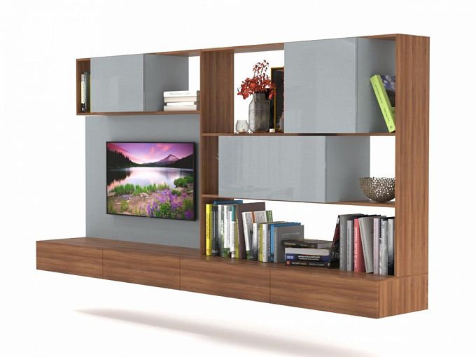 Гостиная Кросс 506 BMS гармонично вписывается в современные минималистичные интерьеры. Подвесная композиция включает в себя широкую низкую тумбу с выдвижными ящиками, просторную панель под ТВ с большой диагональю и стеллаж с открытыми и глухими отделениями для размещения бытовых вещей, книг и предметов декора. В оформлении гостиной эффектно скомбинированы древесные тона и глянец с оттенком металлик. Купить гостиную Кросс 506 BMS приглашаем в наш интернет-магазин.