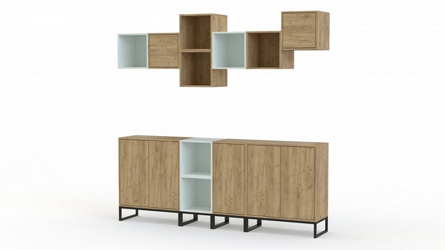 Стенка Мелисса 10 BMS состоит из напольных и навесных модулей, которые можно комбинировать между собой и дополнять аналогичными. Три распашные тумбы и открытые кубические секции обеспечат удобное размещение бытовым вещам и рабочим материалам, аппаратуре и интерьерным украшениям. Многофункциональная стенка с металлическим основанием в модном лофтовом дизайне найдет себе применение в гостиных, спальнях и кабинетах. Купить стенку Мелисса 10 BMS с выбором подходящей цветовой палитры вы сможете в нашем интернет-магазине.