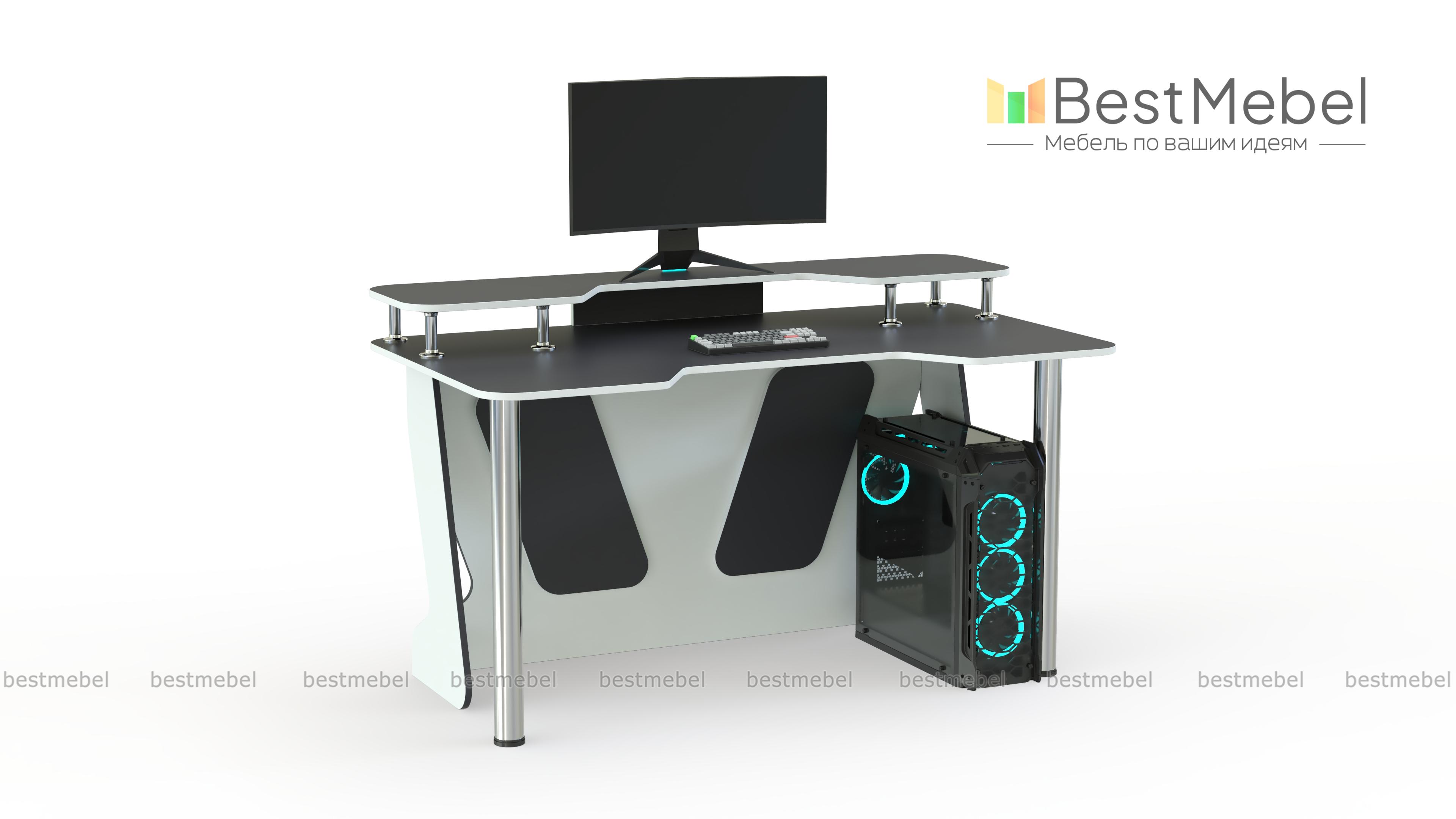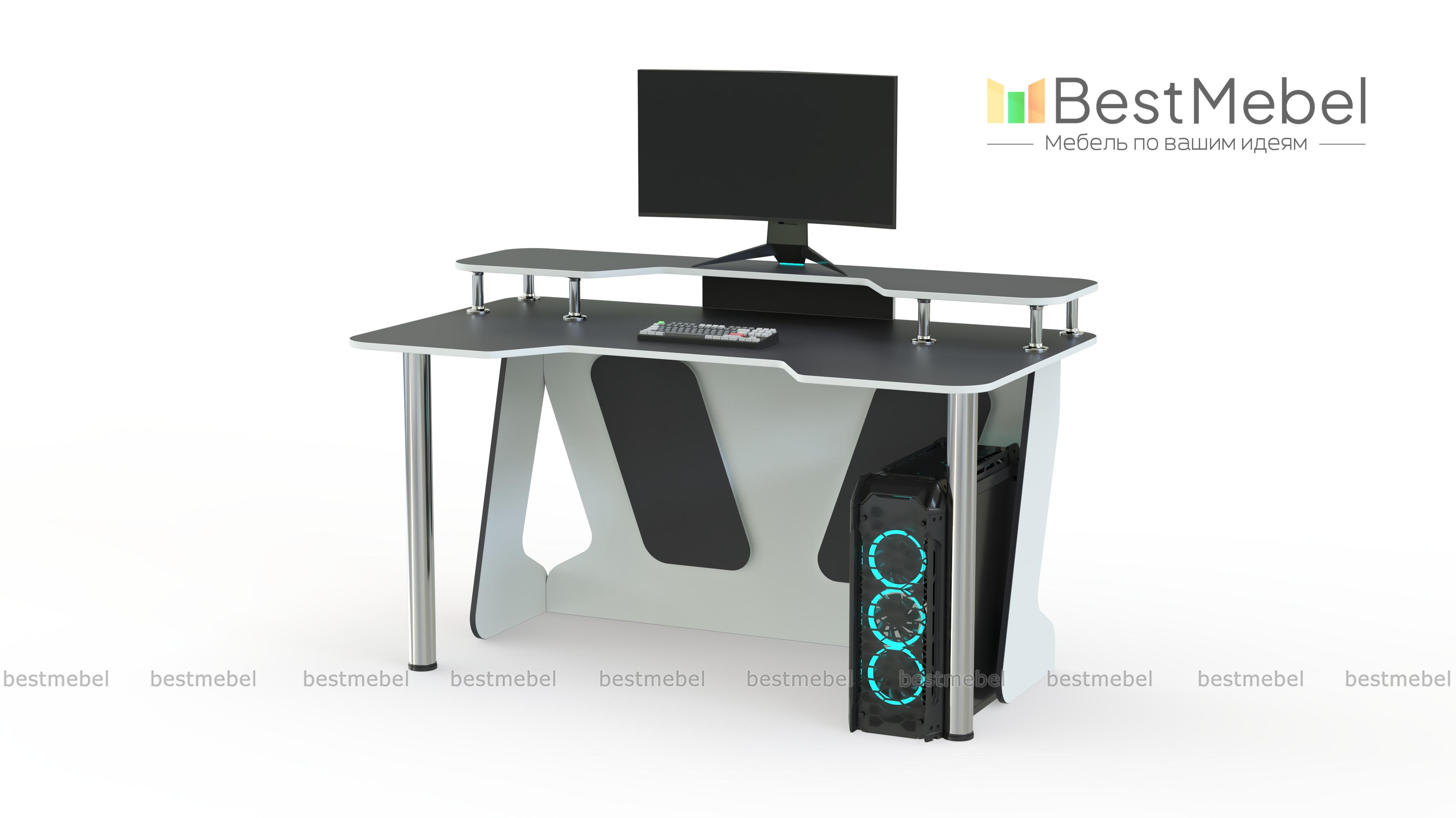 Геймерский стол Финн-4 BMS отличается креативным дизайном и интересным цветовым решением в сером и белом оттенке. Просторная столешница со скругленными углами и эргономичным вырезом дополнена надстройкой, которая позволит разместить на удобной высоте монитор и периферийные устройства. Устойчивость и легкость модели придают регулируемые хромированные ножки и опоры из ЛДСП с декоративными вырезами. Купить геймерский стол Финн-4 BMS приглашаем к нам в интернет-магазин.