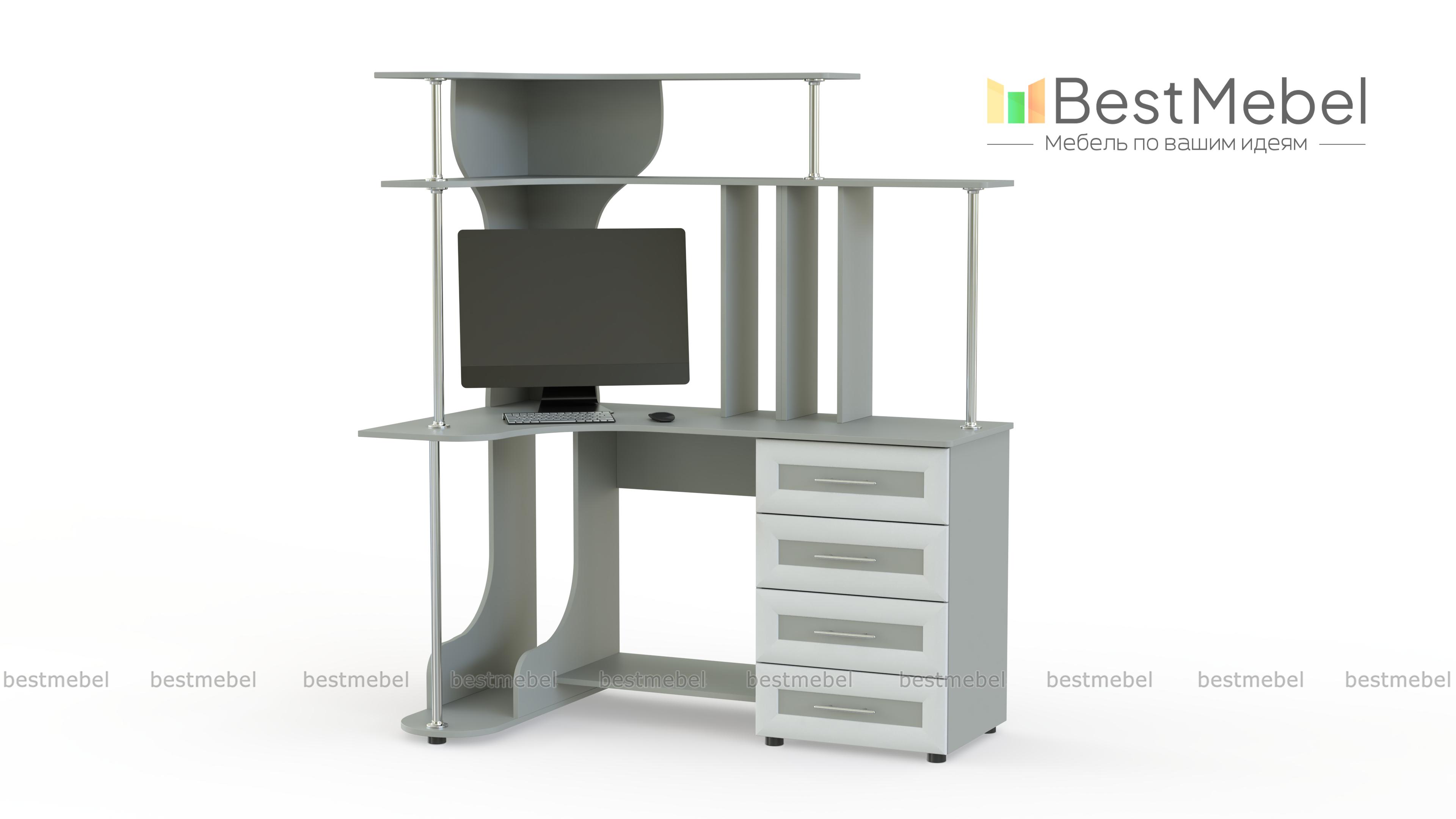 Представляем Вам компьютерный угловой стол Вулкан – отличный выбор для тех, кто любит большую рабочую зону. Изделие имеет интересную конструкцию и включает в себя 4 вместительных ящика, нишу для системного блока, многоуровневую панель для документов или предметов декора. Также имеется подставка под ноги, что обеспечит еще больший комфорт. Выбрав на сайте подходящий цвет изделия, Вы подчеркнете чувство собственного стиля, креативность. Такую модель с легкостью можно заказать прямо на сайте по доступной цене.