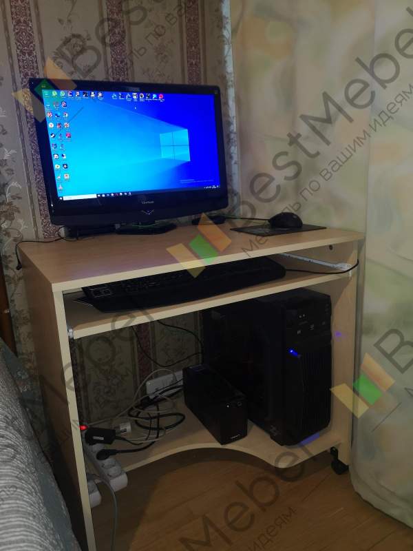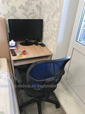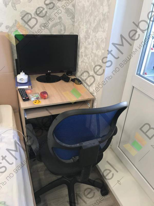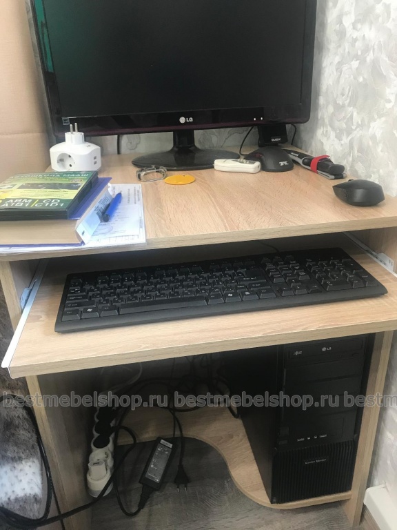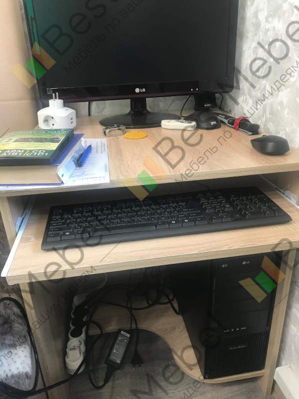 Неплохой компьютерный стол. Нам нужен был небольшой, чтобы встал в оставшееся место возле кровати (60 см). подкорректировала ширину стола и его цвет корпуса (дуб Сонома) на сайте . Легко и удобно. То, что нам было нужно. При 60 см, конечно, ногам не очень удобно, так как мешает системник, но с выдвижной полкой для клавиатуры получше работать.
