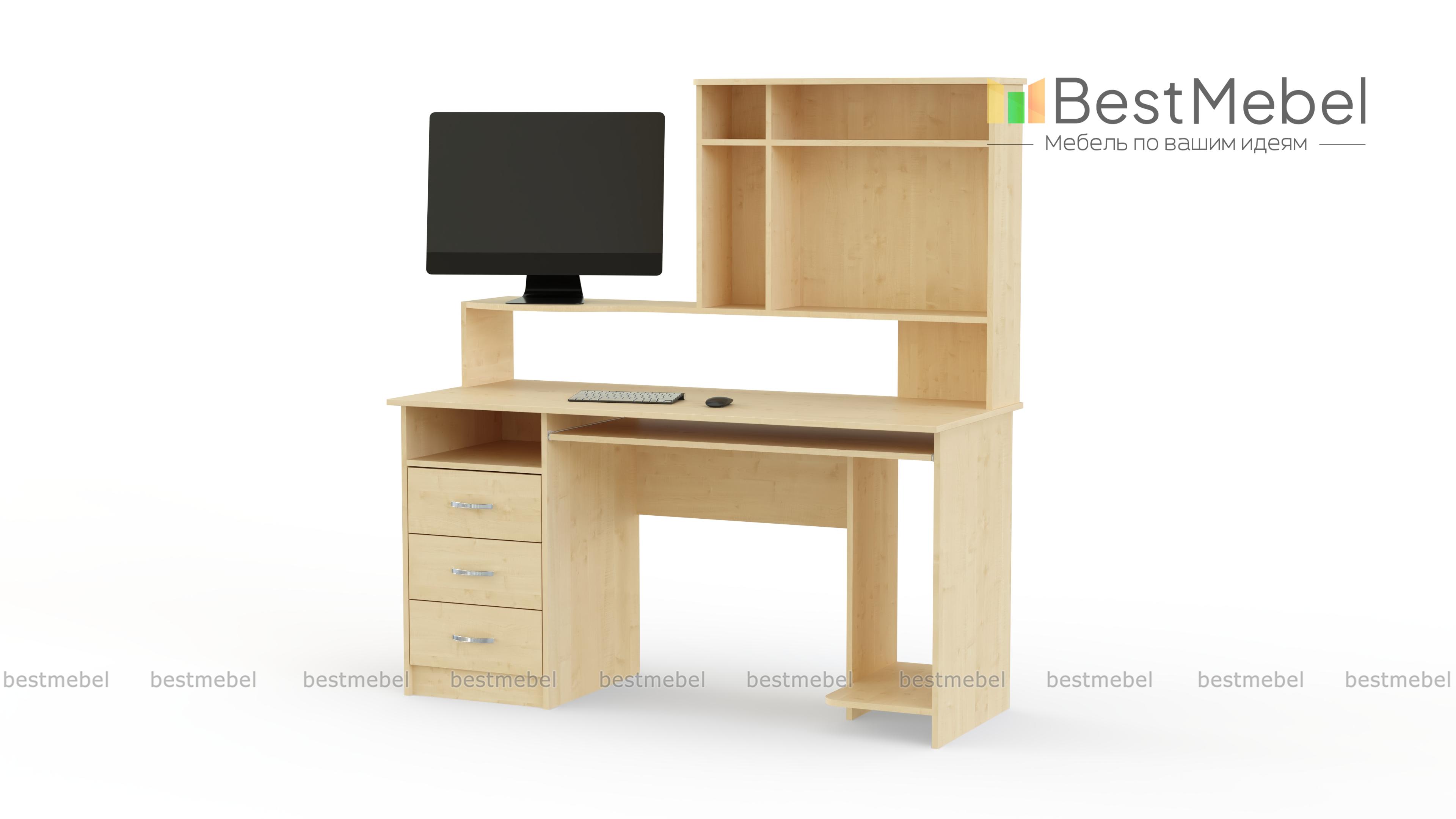 Этот стол отлично подойдет для комнаты подростка. Он имеет необходимые специальные места для удобного размещения компьютерной техники, и кроме этого с успехом может исполнять роль письменного стола. За счет специальной полочки для клавиатуры освобождается довольно большая рабочая поверхность. Стол компьютерный ПСК-6 имеет тумбу с тремя выдвижными ящичками и открытую полку для мелочей, учебников и тетрадей. Купить такую модель можно также для сотрудников офисов.