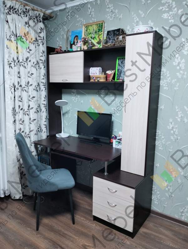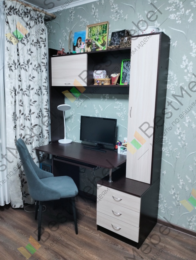 Симпатичный , аккуратный , удобный. Сделали быстро. На почту прислали эскиз .Добавили пару полочек по моему желанию .Правда забыли полку под клавиатуру , но обещали в ближайшее время привезти .Спасибо !
