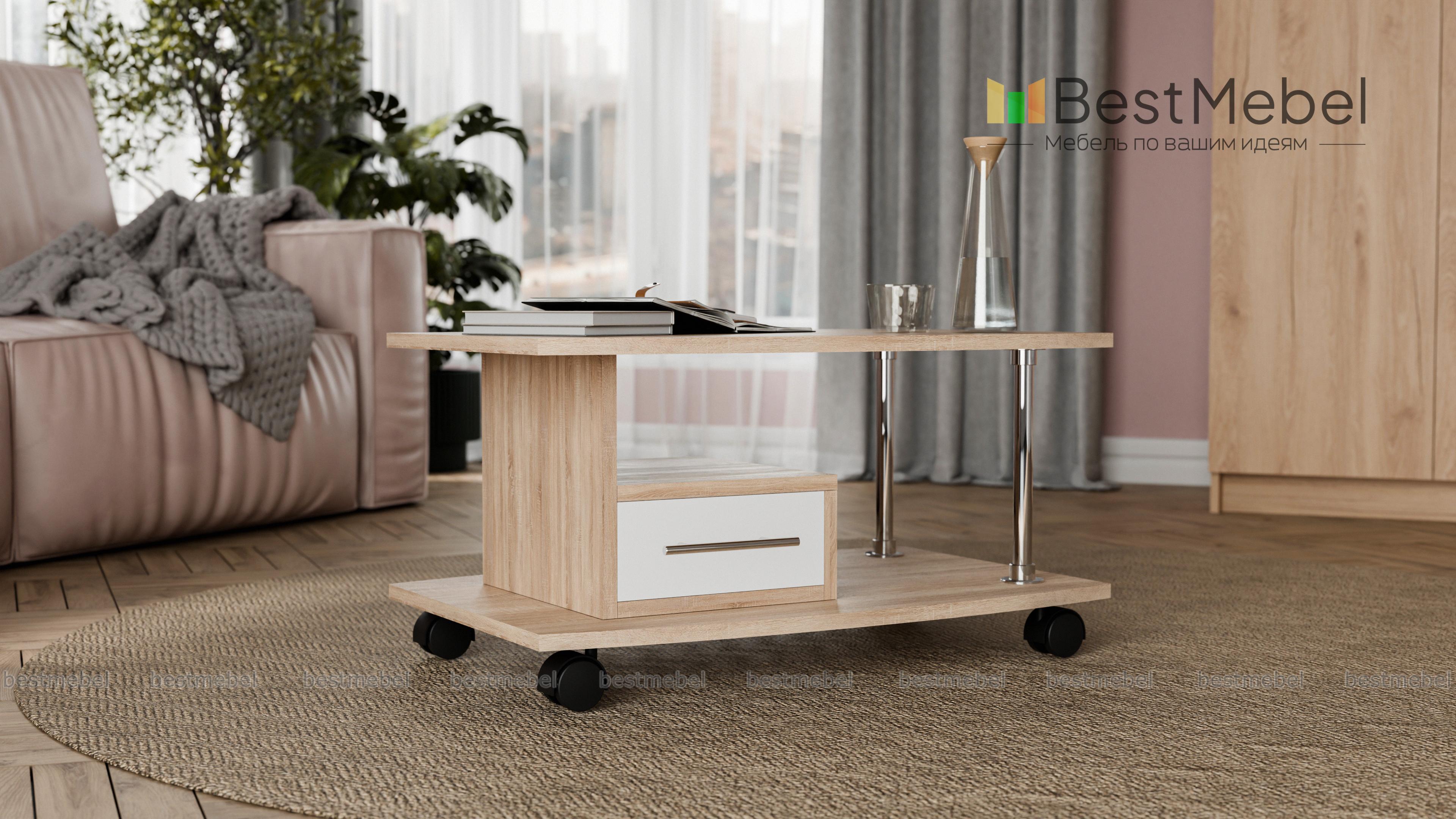 Журнальный столик Пример 162 BMS – это строгая геометрия форм и высокая функциональность, характерная для современных дизайнов. Модель оборудована широкой, чуть скругленной столешницей, основанием с колесными опорами для легкости перемещения и выдвижным ящиком, удобным для хранения мелочей. В оформлении гармонично сочетаются контрастные древесные тона и фурнитура оттенка металлик. Купить журнальный столик Пример 162 BMS приглашаем в наш интернет-магазин по демократичной цене.