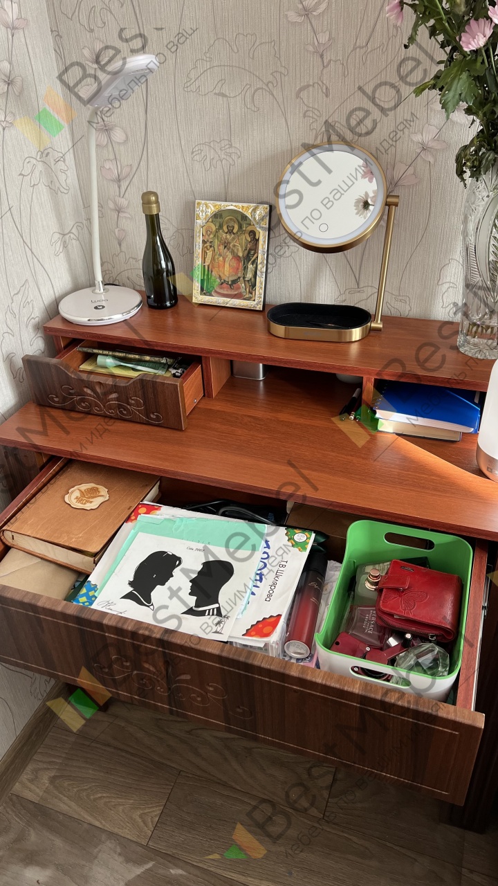 Заказ 00000330804, изделие Трюмо Жаклин Д-11 BMS (900х860х400) доставлен точно в запланированные сроки. Спасибо сотрудникам магазина за помощь в выборе трюмо и консультацию. Заказ пришел целым без повреждений и в полной комплектации. Упакован на совесть. Инструкция по сборке позволила без проблем самостоятельно собрать трюмо. Качество соответствует цене и ожиданиям.