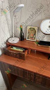 Трюмо Жаклин Д-11 BMS выполнено в универсальных темных тонах и украшено по фасаду изящной фрезеровкой. Модель гармонично дополнит интерьер спальни в классическом стиле и сделает уход за собой комфортным. Трюмо оборудовано просторной столешницей с выдвижным ящиком для мелочей и надстройкой, оборудованной нишами и миниатюрным ящичком. Устойчивость конструкции обеспечивают широкие боковины с накладками. Купить трюмо Жаклин Д-11 BMS вы сможете по выгодной цене в нашем интернет-магазине.