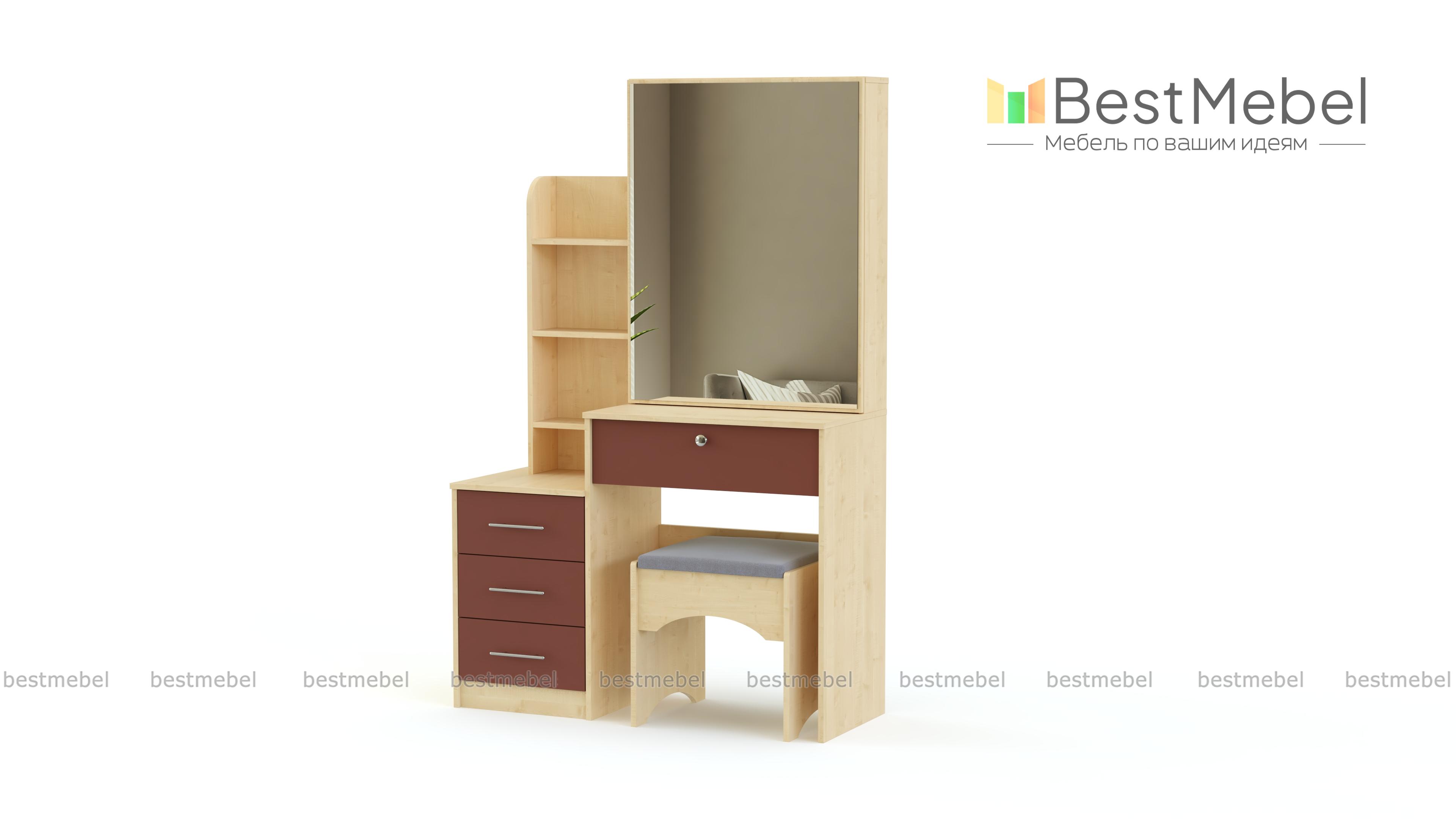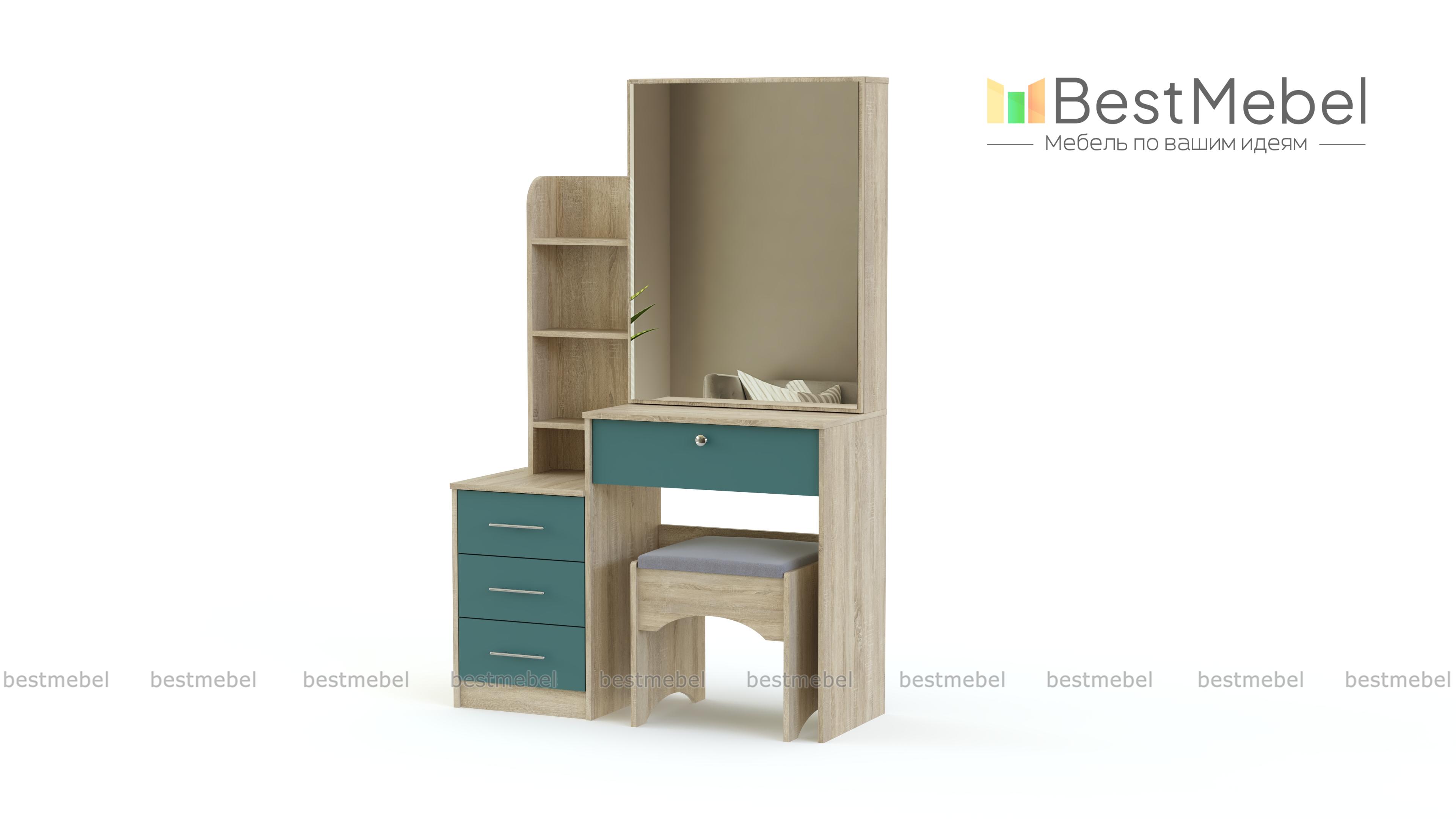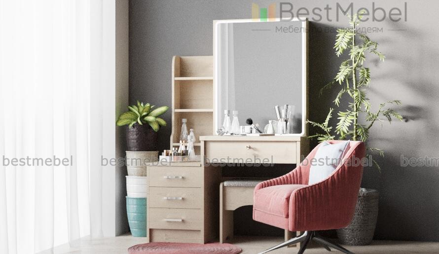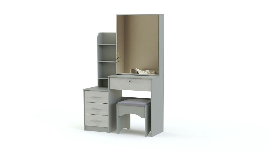 Туалетный столик Хлоя 20 BMS оборудован продуманной до мелочей системой хранения, которая позволит разместить в зоне быстрого доступа все необходимые средства по уходу. Практичная разноуровневая модель современного дизайна объединила столик с просторной рабочей поверхностью и выдвижным ящиком, тумбу, мини-стеллаж и зеркальный шкафчик с раздвижной дверцей. Дополнительно установленная окантовка светодиодной лентой поможет нанести макияж в любое время дня. Купить туалетный столик Хлоя 20 BMS приглашаем в наш интернет-магазин.
