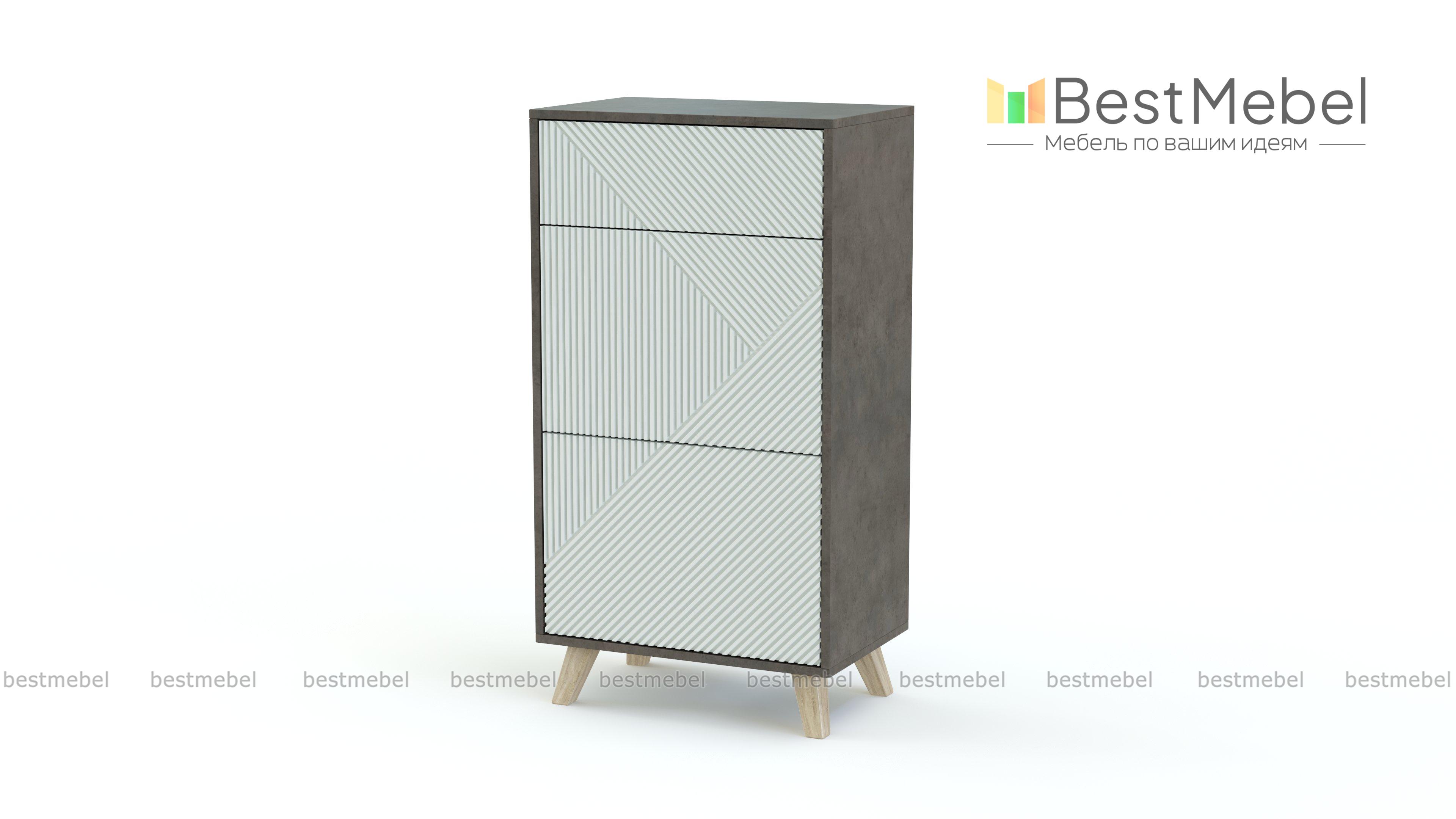Тумба Дастин 19 BMS может использоваться как стильный акцент в интерьере современной квартиры или часть модульной композиции. Фасад без лицевой фурнитуры украшает геометрический рельеф, высокие скошенные опоры выполнены в духе сканди. Для удобного хранения малый выдвижной ящик, расположенный под столешницей, дополняют два более вместительных отделения. Купить тумбу Дастин 19 BMS приглашаем к нам интернет-магазин с выбором нужных размеров и оттенков из нашего каталога.
