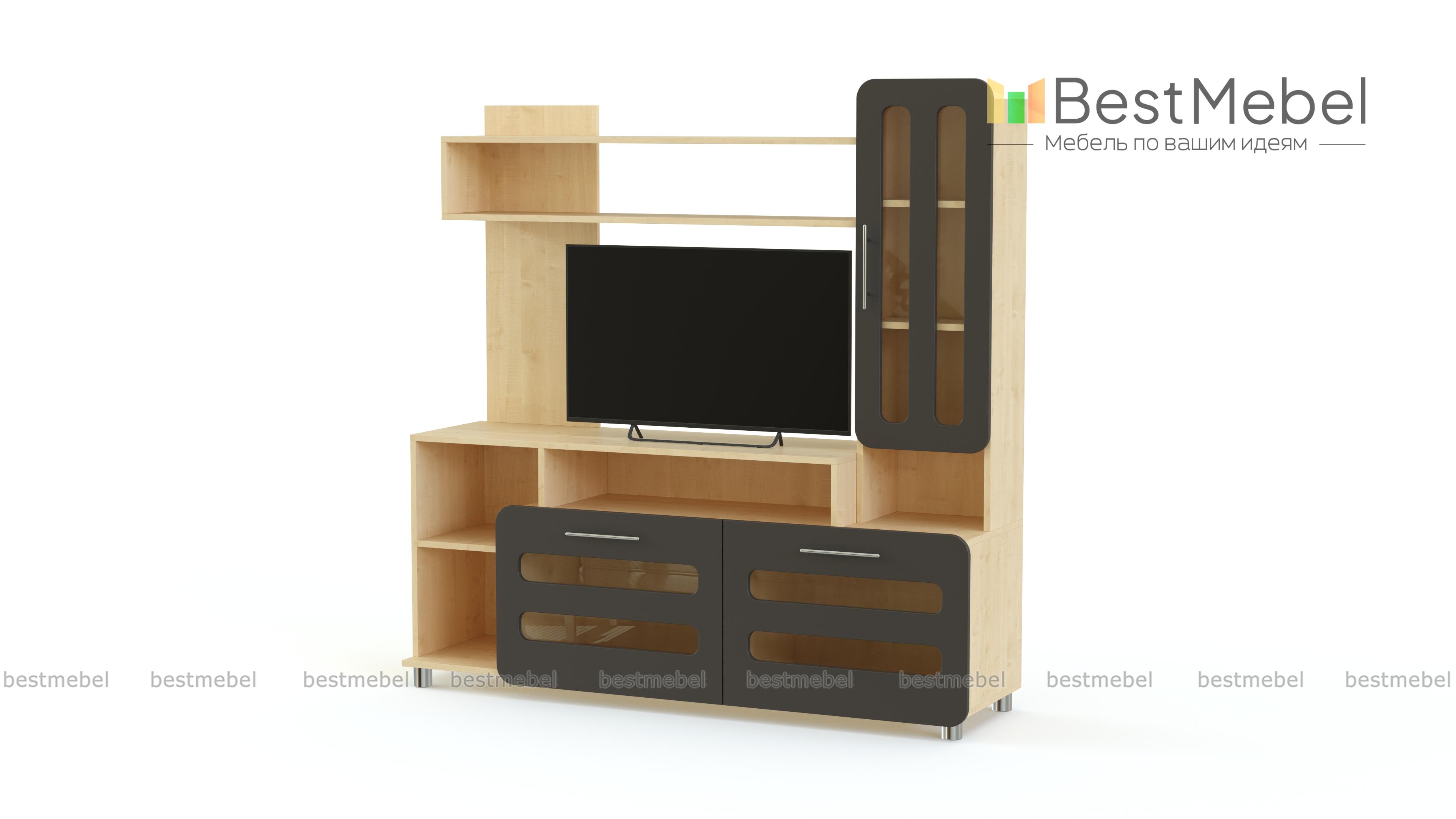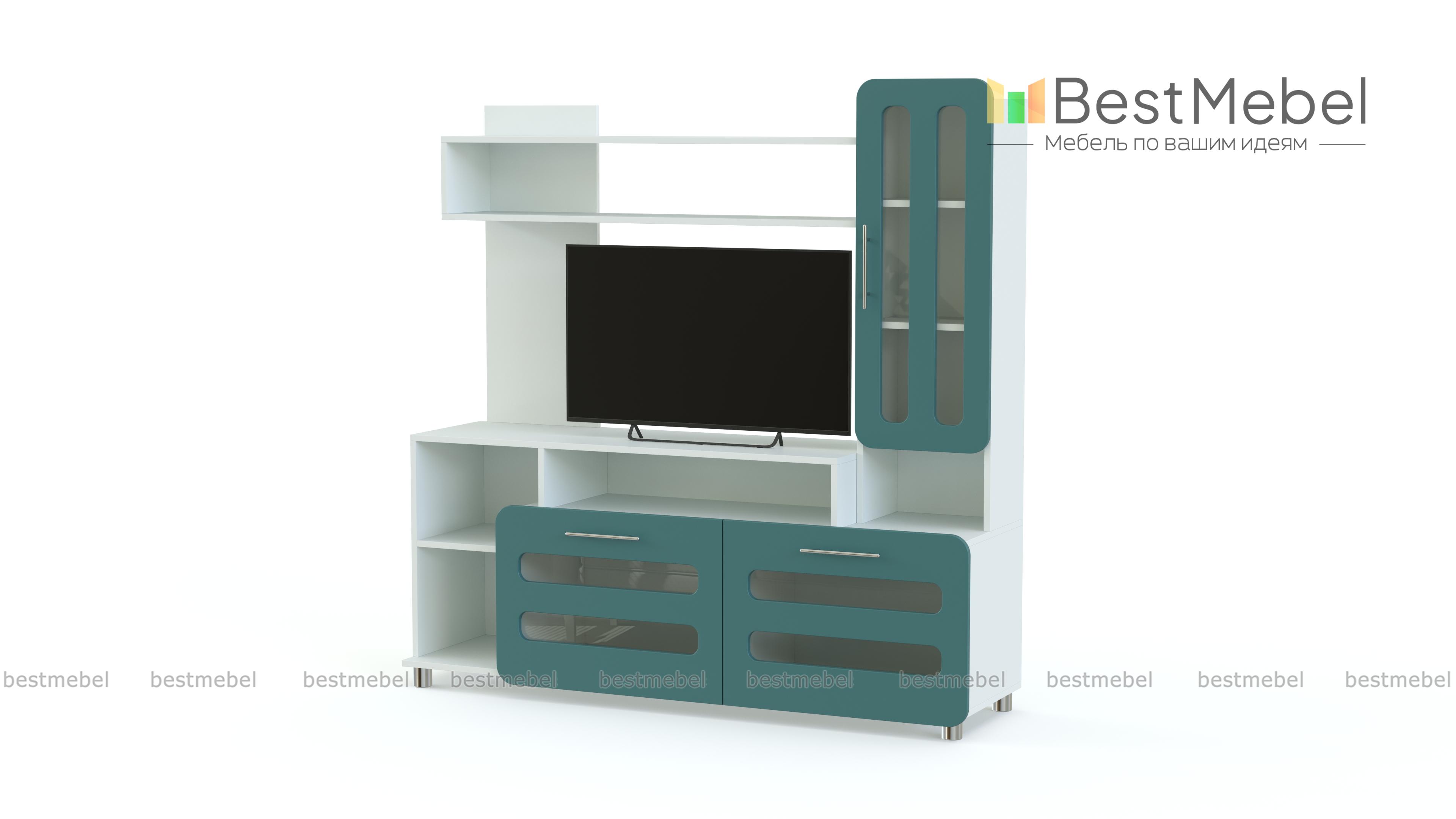 Тумба под ТВ Ф-11 BMS – вместительная модель, которая станет отличным дополнением интерьера современной гостиной или детской комнаты. Модель оборудована всем необходимым для удобного размещения ТВ, книг и множества мелочей. Под просторной столешницей располагается ниша, открытые полки и вместительные откидные секции, дополняют тумбу застекленный шкафчик с полками и открытая полка-надстройка. Особенно оригинальный вид модели придают яркие матовые фасады. Купить тумбу под ТВ Ф-11 BMS приглашаем в наш интернет-магазин.