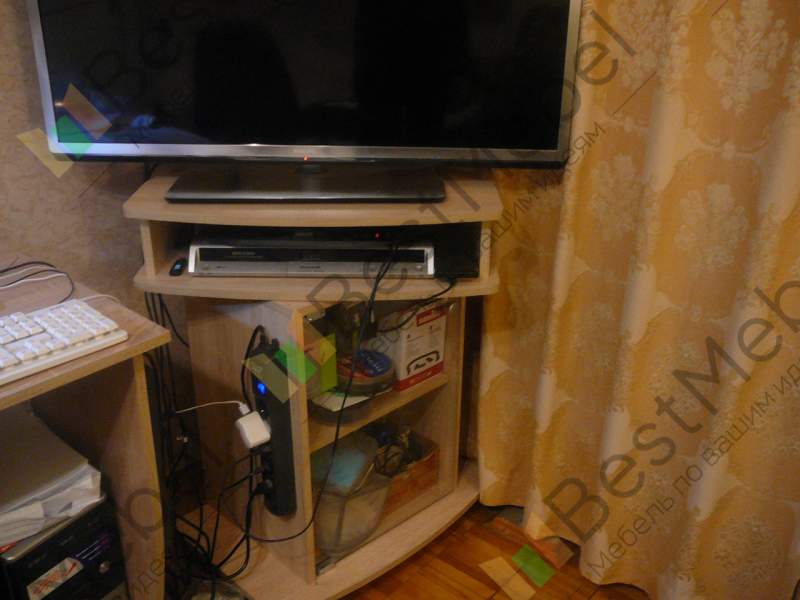 Заказ 201621 Темный цвет сразу же было решено заменить на светлый ,как советуют дизайнеры,в малых комнатах особенно ,также увеличена высота для удобства просмотра телевизора. Сама тумба ,как видно на снимке ,смещает также много : маленький пылесосик, аптечку , диски ДВД и еще много вещей ))))