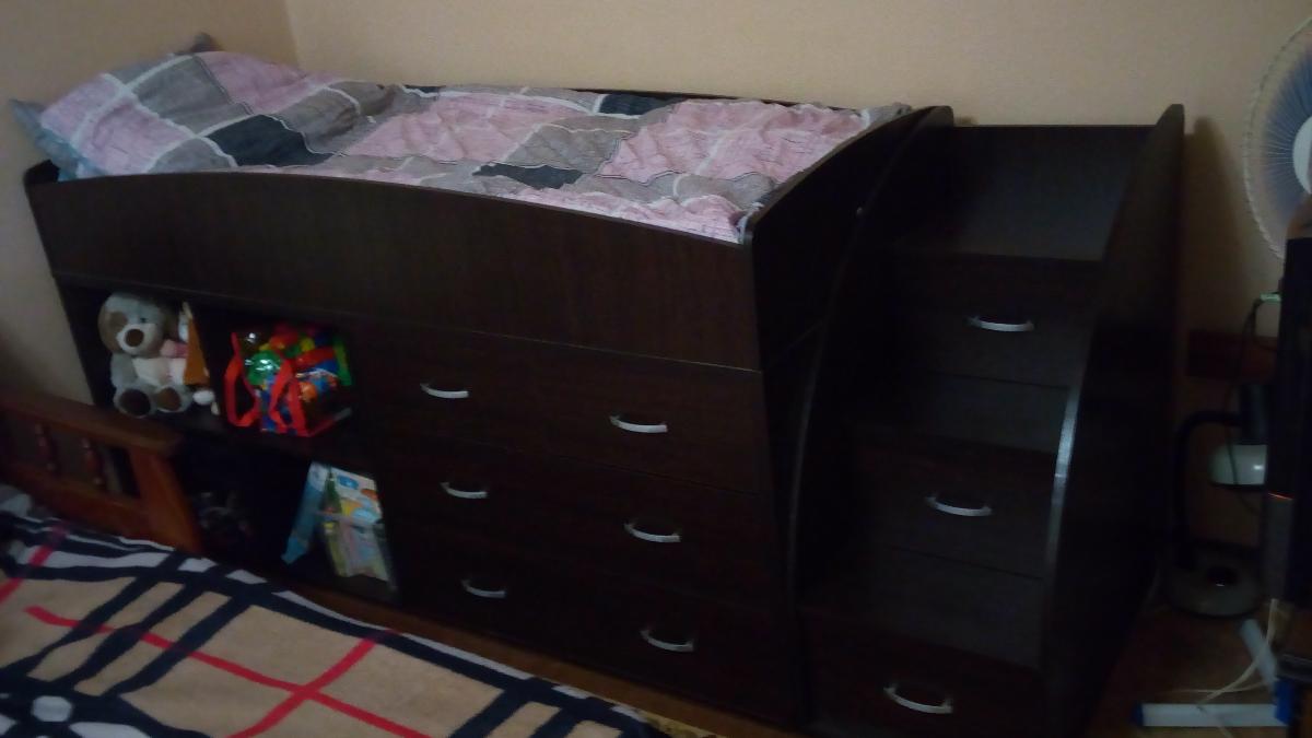 Заказывали для ребенка 3-х лет. Отлично подошла, удобные ступеньки, хорошее качество, все в комплекте было и без брака, изготовили и привезли вовремя. Вместительные отделения и ящики. Здесь же заказали матрас на эту кровать. Только инструкция по сборке нам не помогла, в таком количестве деталей мы не разобрались, пришлось вызывать сборщика