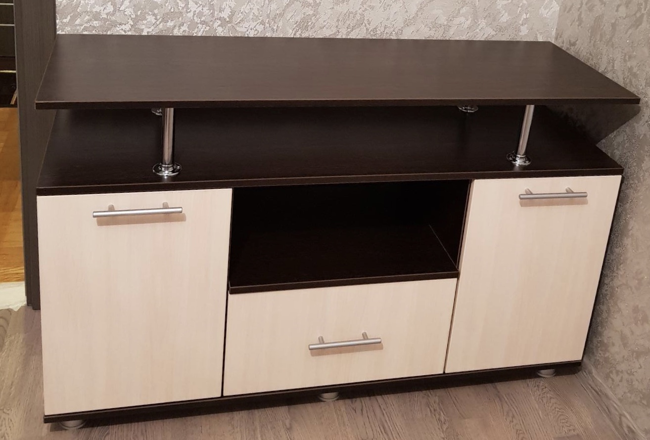 Недавно сделал у себя в комнате ремонт и решил приобрести себе ТВ-тумбу. После долгого поиска остановил свой выбор на этой модели. Функциональность хорошая. Установил телевизор. В нишу поместилась вся необходимая техника. Хорошо что при заказе есть возможность выбрать необходимые тебе размеры, цвет, фурнитуру. Покупкой доволен.