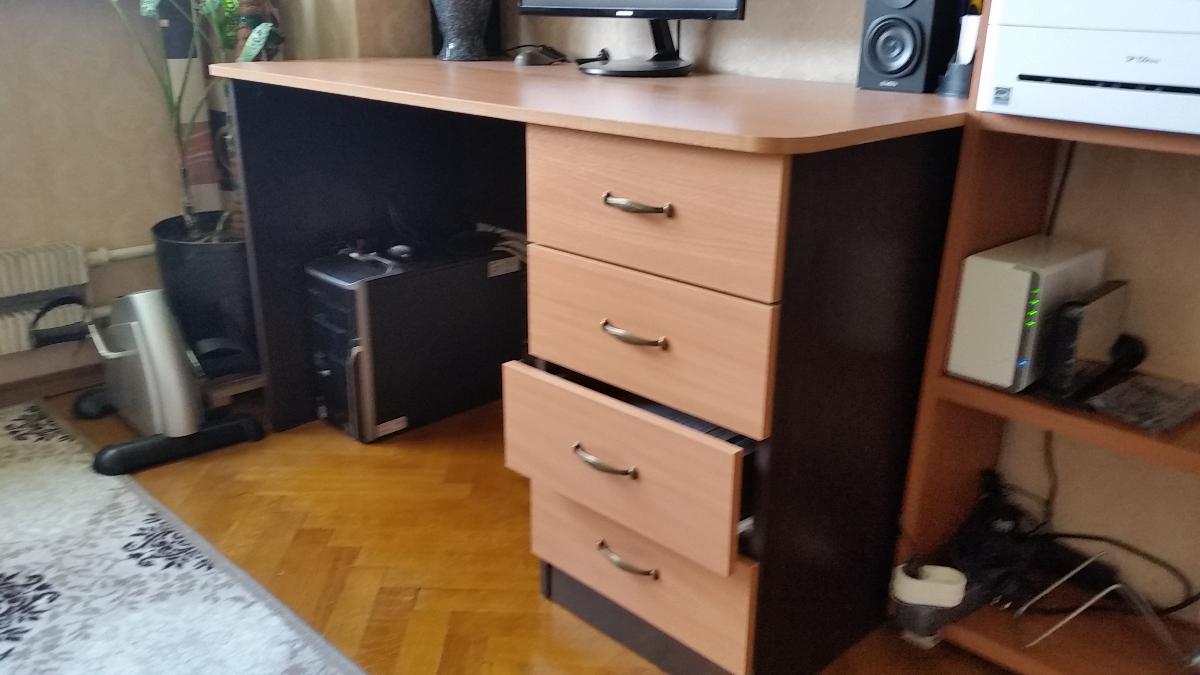 Заказал в BestMebelShop письменный стол СП4. Стол не стандартный. Предварительно выбрал размеры и цвет  столешницы, а также цвет корпуса и фурнитуру. Обещали изготовить и доставить в течение 2-х недель. Сборку не заказывал. Через 10 дней позвонили и сообщили о готовности стола и договорились о доставке. Доставка в Москве бесплатная. Водитель позвонил при выезде и подъезде к дому. Помог донести до лифта. Стол собрал сам по инструкции-картинке без проблем. Все отверстия были размечены или высверлены,  крепеж и фурнитура в комплекте. Косяков не наблюдалось. Из инструментов потребовалась отвертка и прилагаемые к столу ключи. Стол очень удобный, для своей цены все весьма достойно. Пользуюсь с удовольствием.